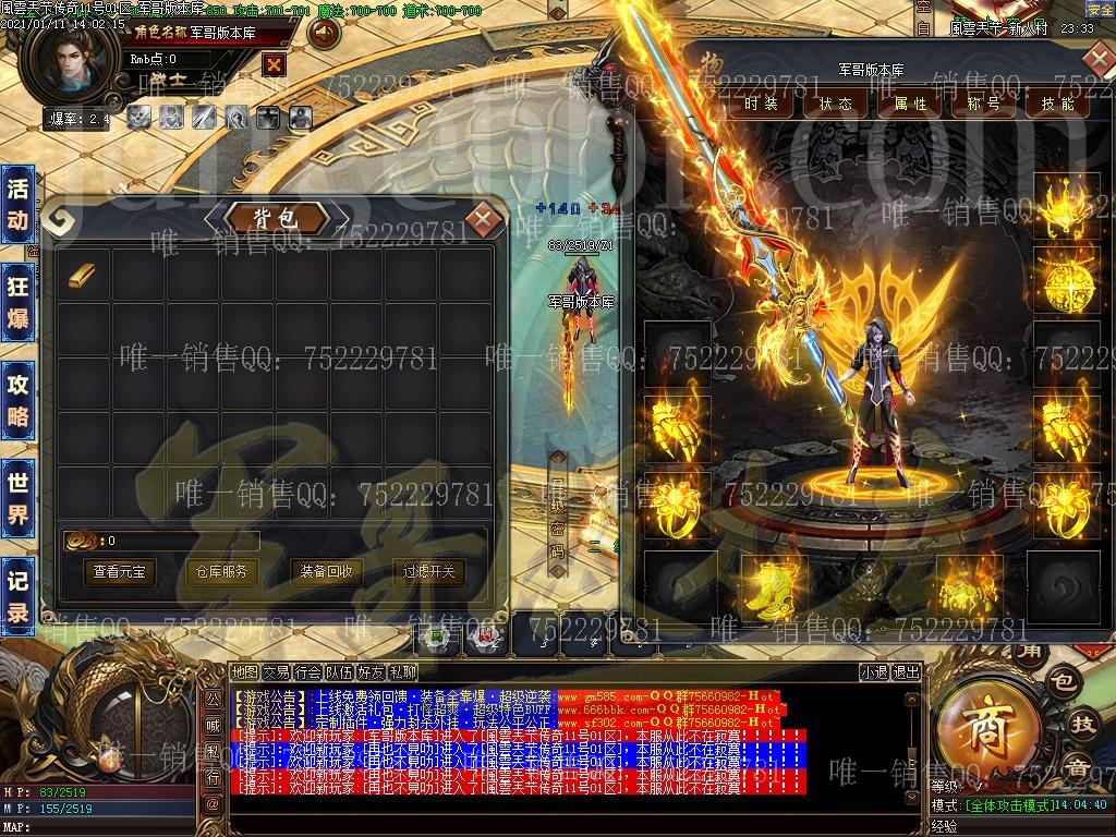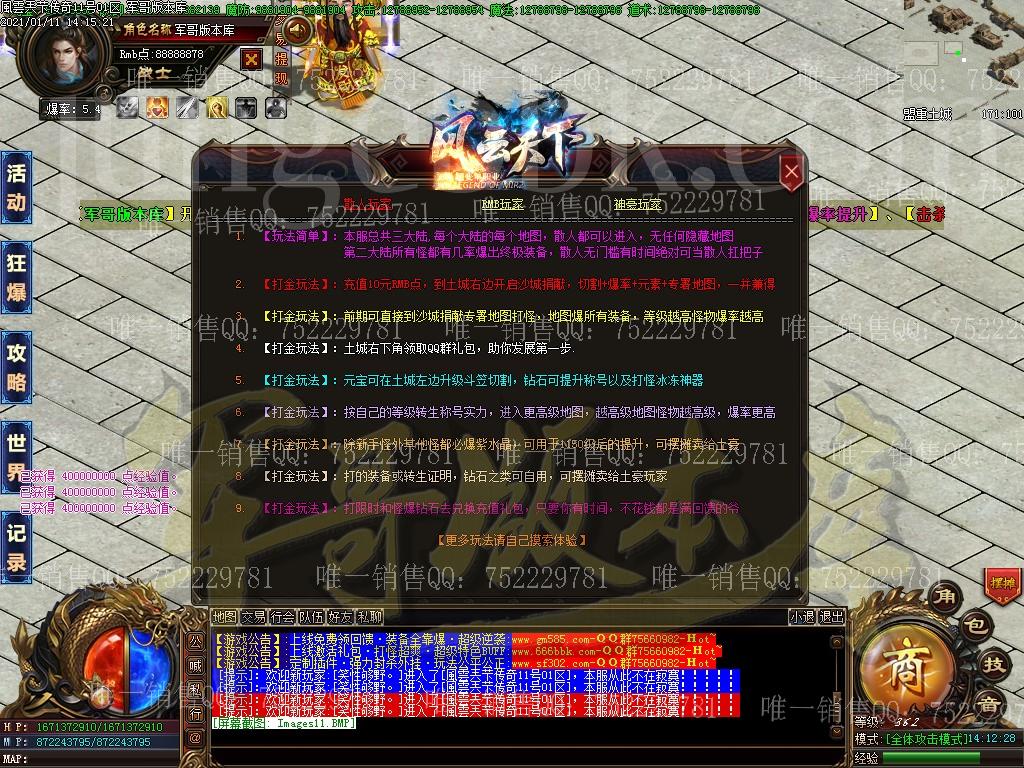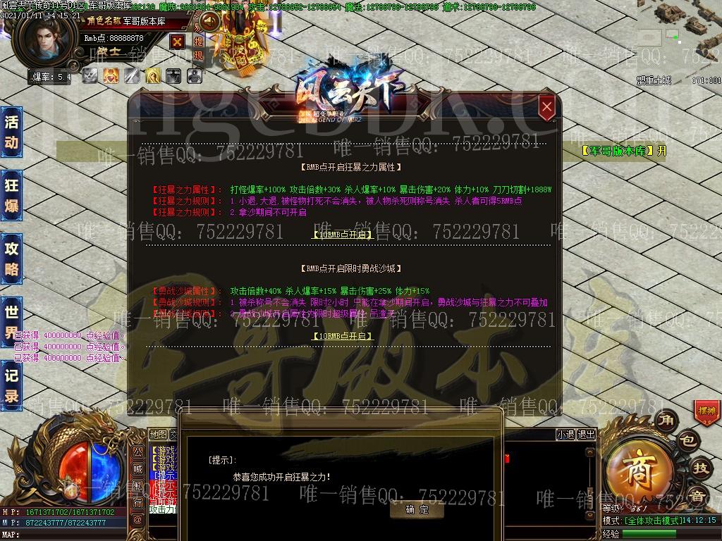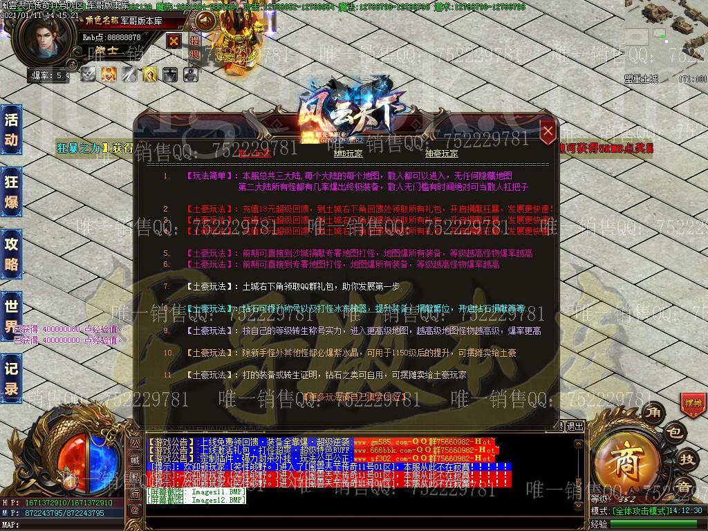 金币充值比例 1 :10   版本为正常开区端有问题联系QQ 616102345  处理
