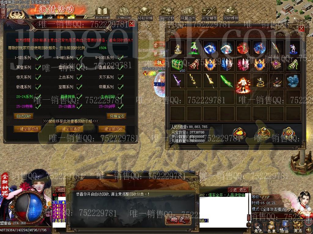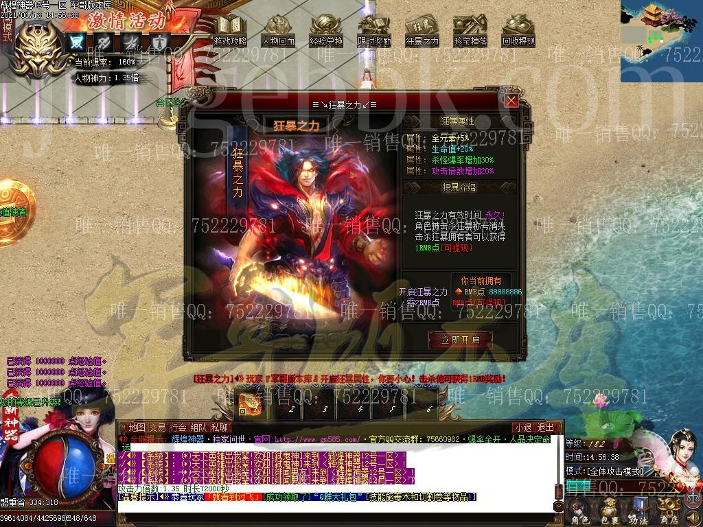 金币充值比例 1 :10   版本为正常开区端有问题联系QQ 616102345  处理