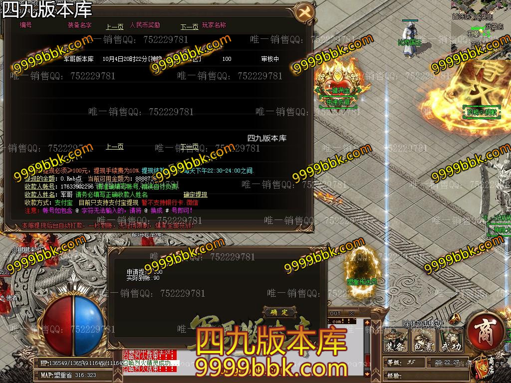 金币充值比例 1 :10   版本为正常开区端有问题联系QQ 616102345  处理