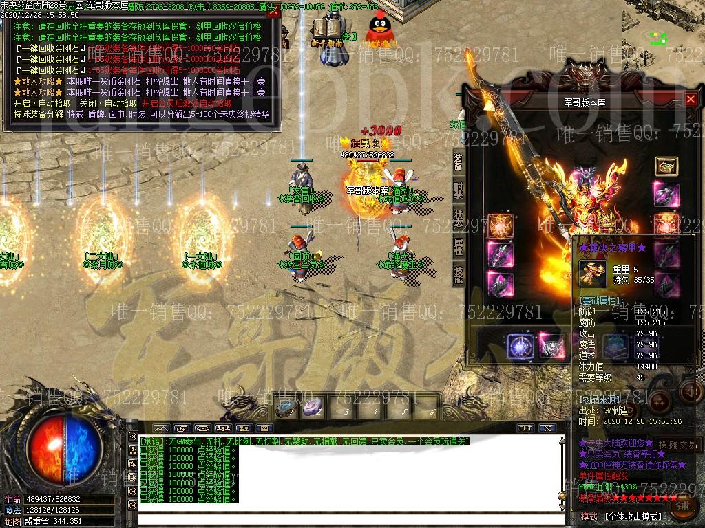 【版本介绍】:开区第三天合区,晚上八点统一攻城,激情沙巴克!!!