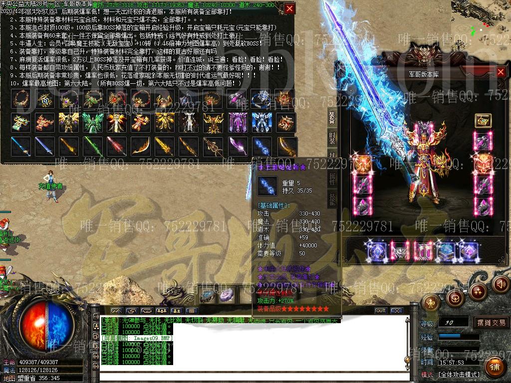 【版本介绍】:独家调控脸白爆一切爆率,大小BOSS都有可能出不同位置的特定专属装备及终极装备。