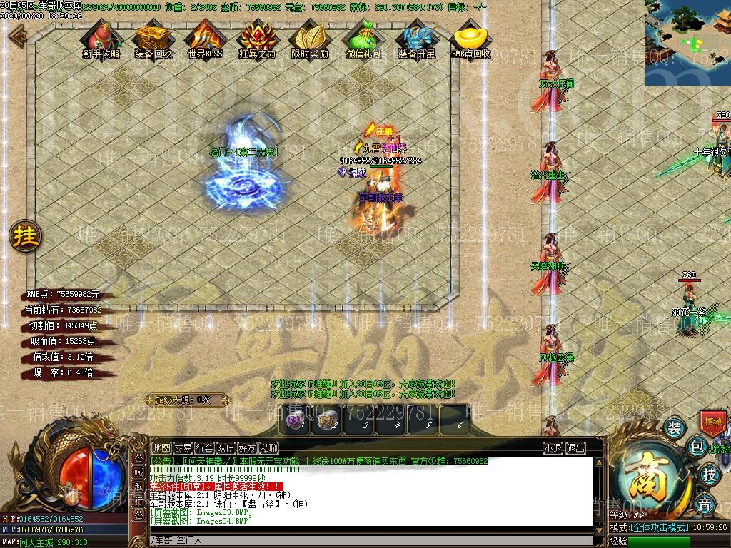 【关于活动】: 本服开区2小时.系统开启终极地图免费进.请玩家一定不要错误.里面狂暴.