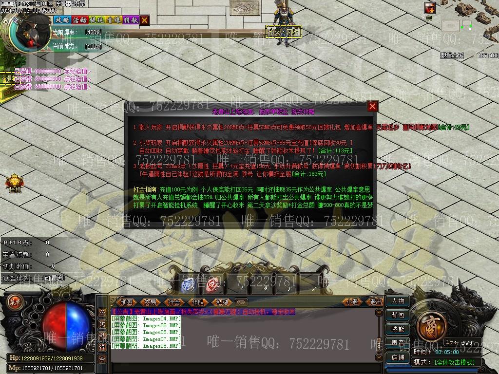 3.老板起号 25Rmb点(沙属性 狂暴)+元宝充值158元 手动升满称号 获得满爆率 满切割积累[刀刀切割2亿]