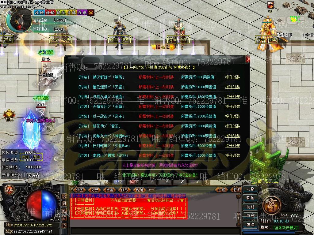 金币充值比例 1 :10   版本为正常开区端有问题联系QQ 616102345  处理