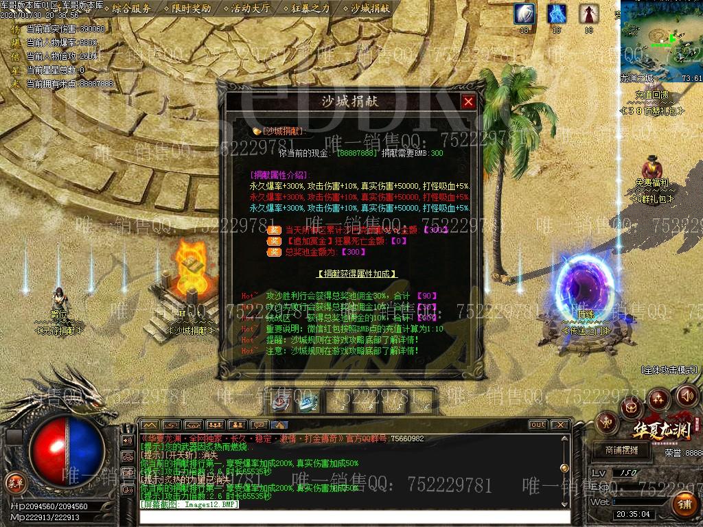 3.充值20,狂暴捐献,属性爆棚,游戏中查看!