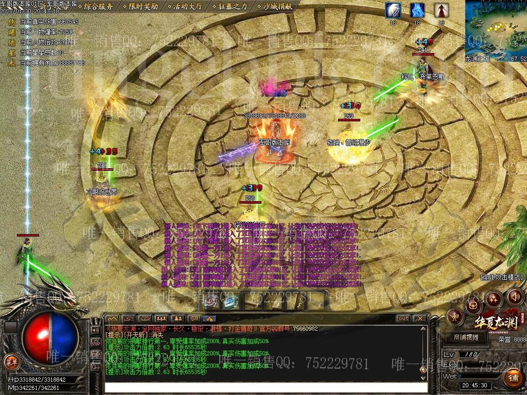 1.充值38元宝,领取满回馈,附带:真伤翻倍(切割)叠加30%,等爆发属性!