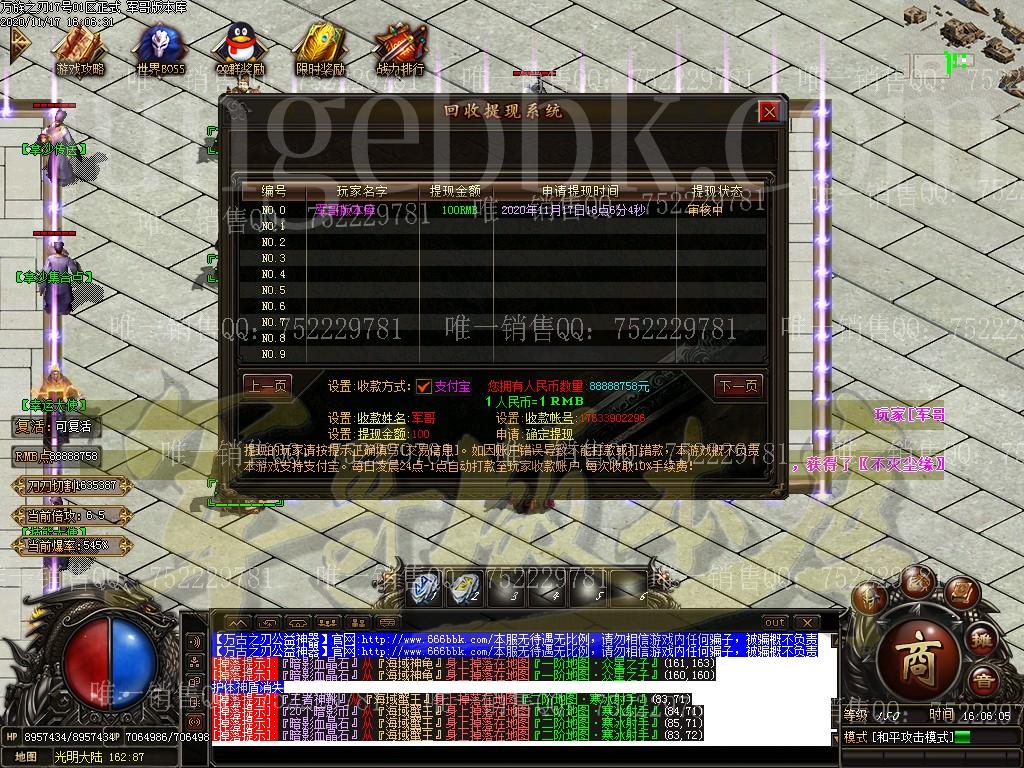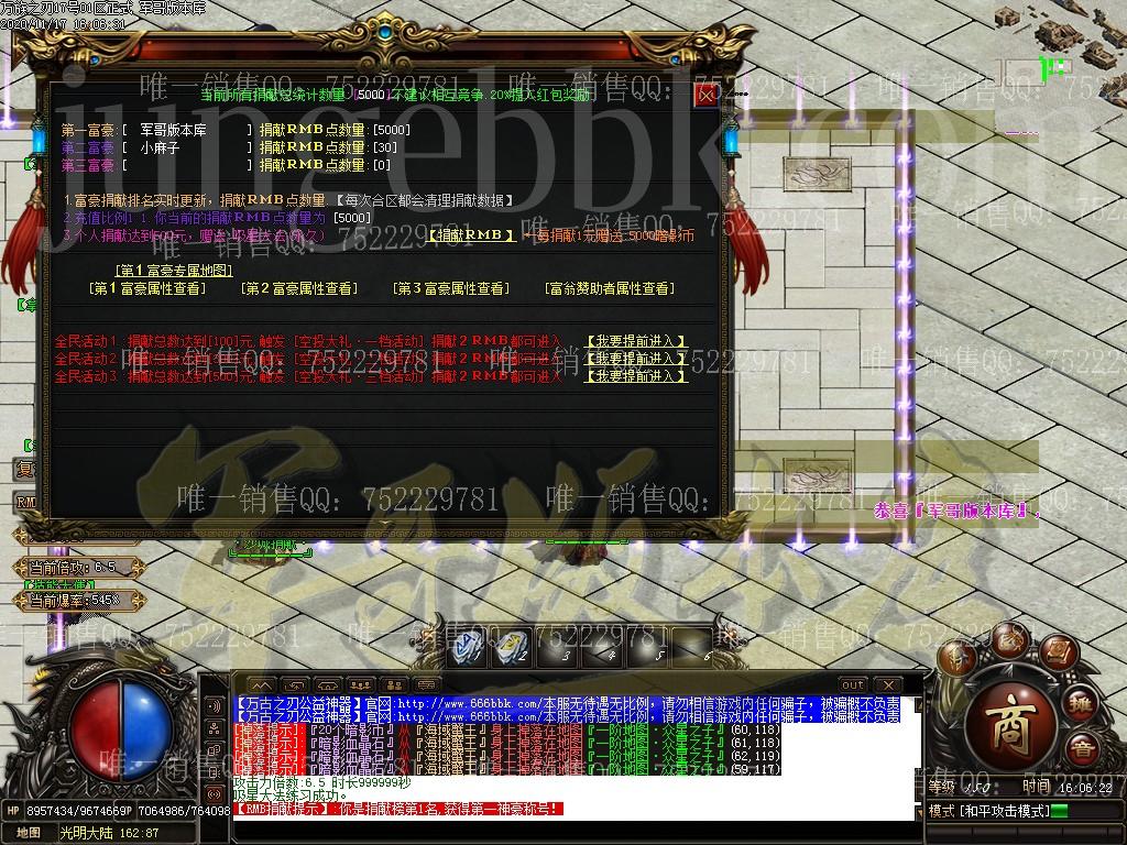金币充值比例 1 :10   版本为正常开区端有问题联系QQ 616102345  处理