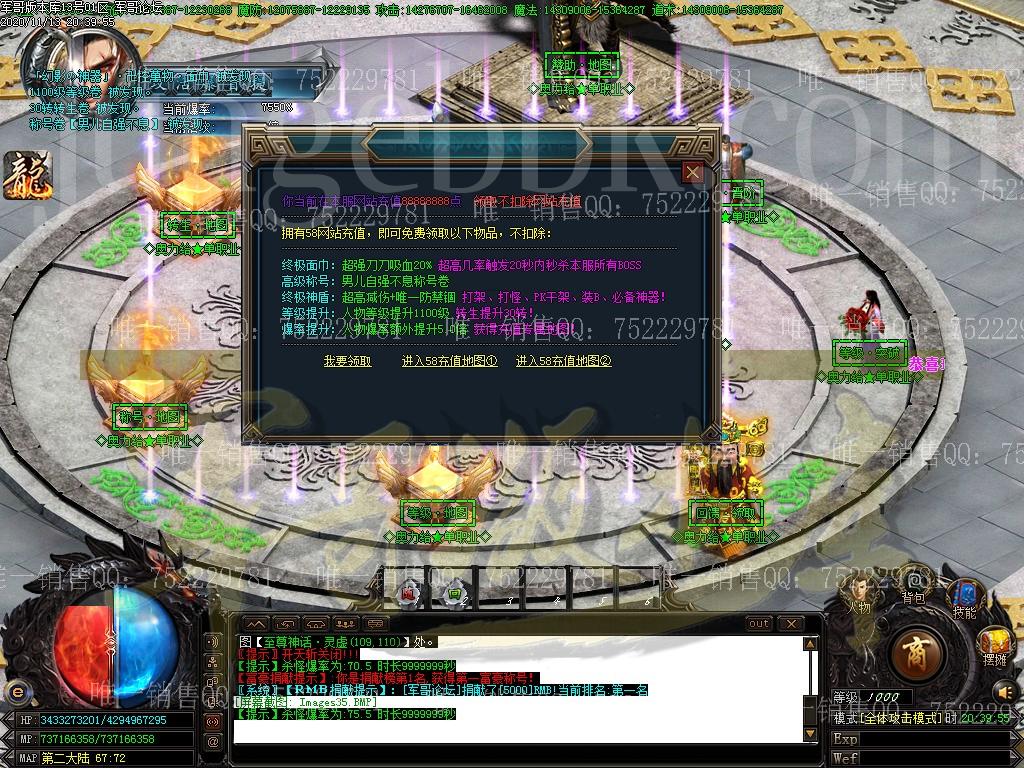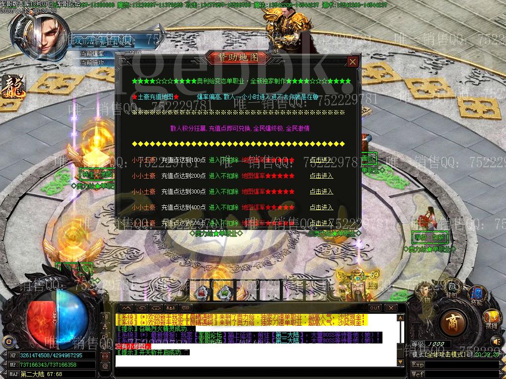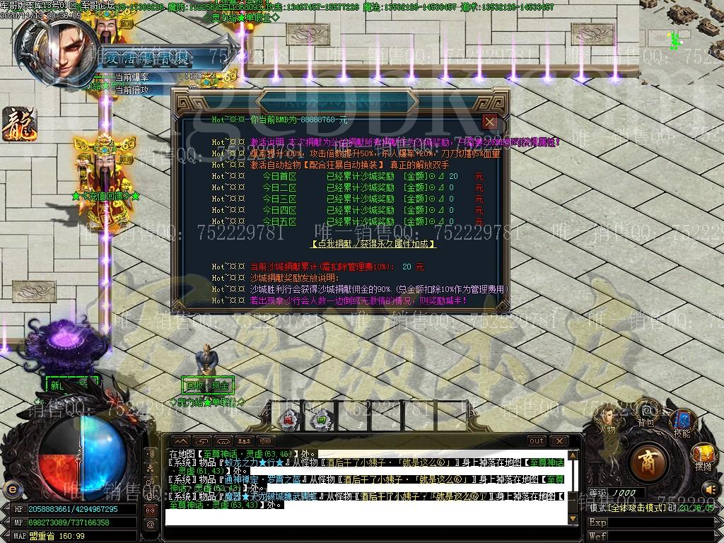 【攻城奖励】:按土城右边沙捐NPC为准,攻城结束后沙老大建微信群拉客服发红包!新区每领取一个18元回馈礼包,官方都会抽取10元作为战区奖励回馈玩家,每天沙城奖励上万!低消费,大激情!!