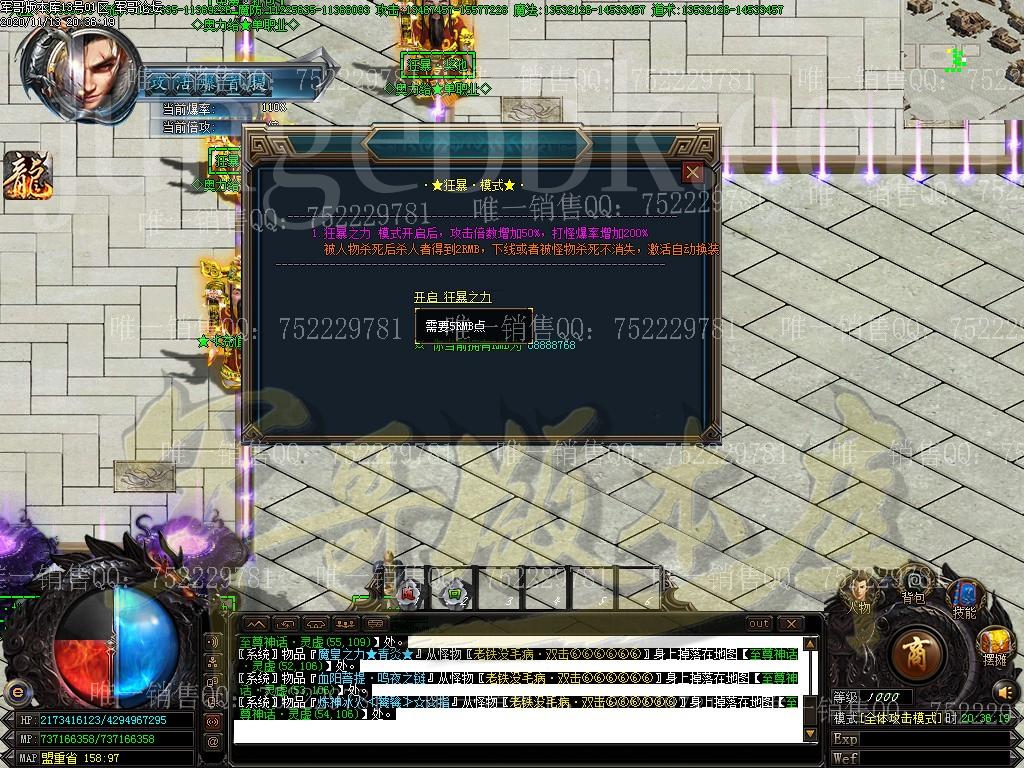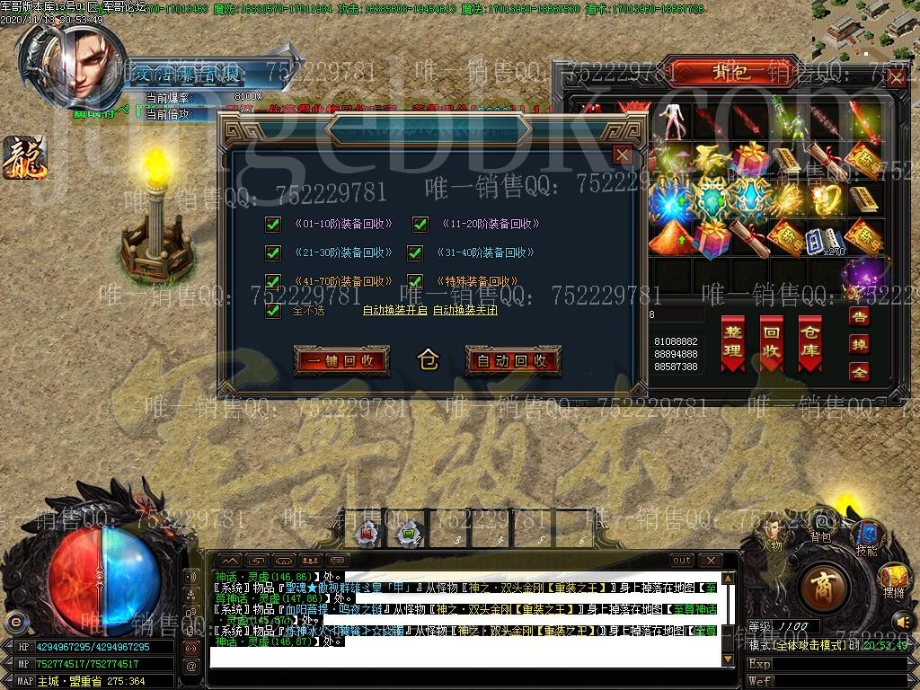 【用处】:开启沙城捐献,开启狂暴之力,自动捡物 自动换装 自动回收 自动挂机!