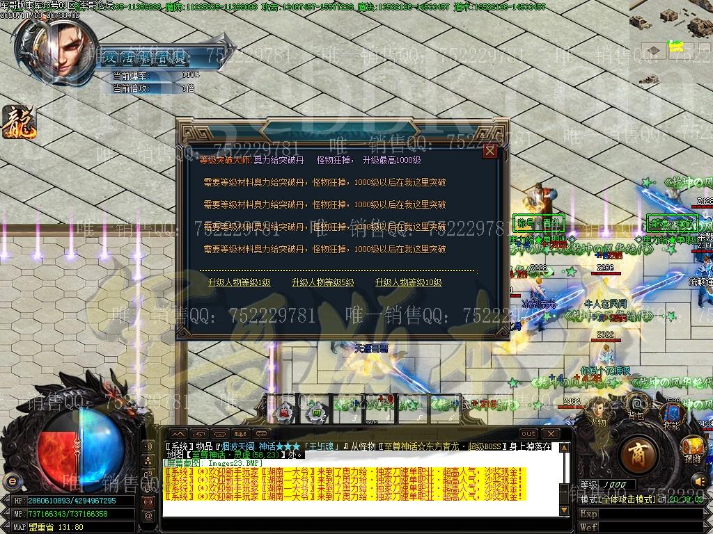 【等级介绍】:1-700随身泡点.700-1000级打怪可爆奥利给突破丹在土城正上方提升等级!1000级以上需用奥利给突破丹在第二大陆提升等级!