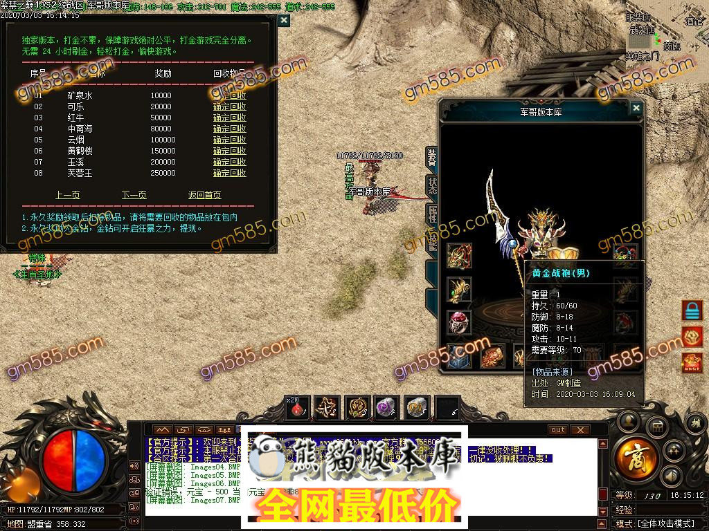 版本特色:永久装备奖励只要打到就有奖励,不限名额,实物超高爆率