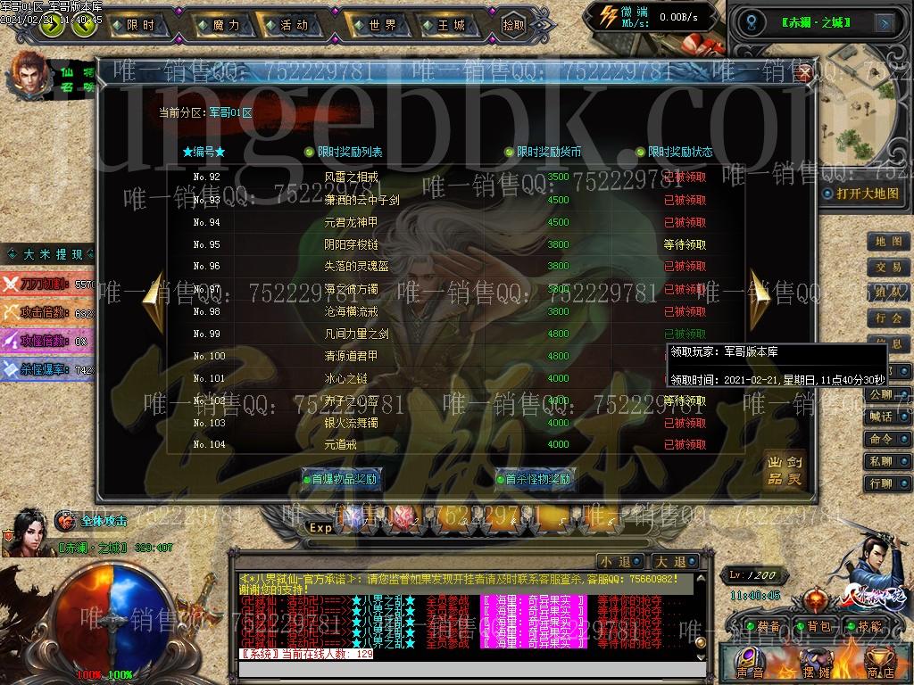 [GEE引擎] 18-156独家八界弑仙单职业传奇服务端-带假人-需要拾取插件-疯狂BUFF-沙城奖励