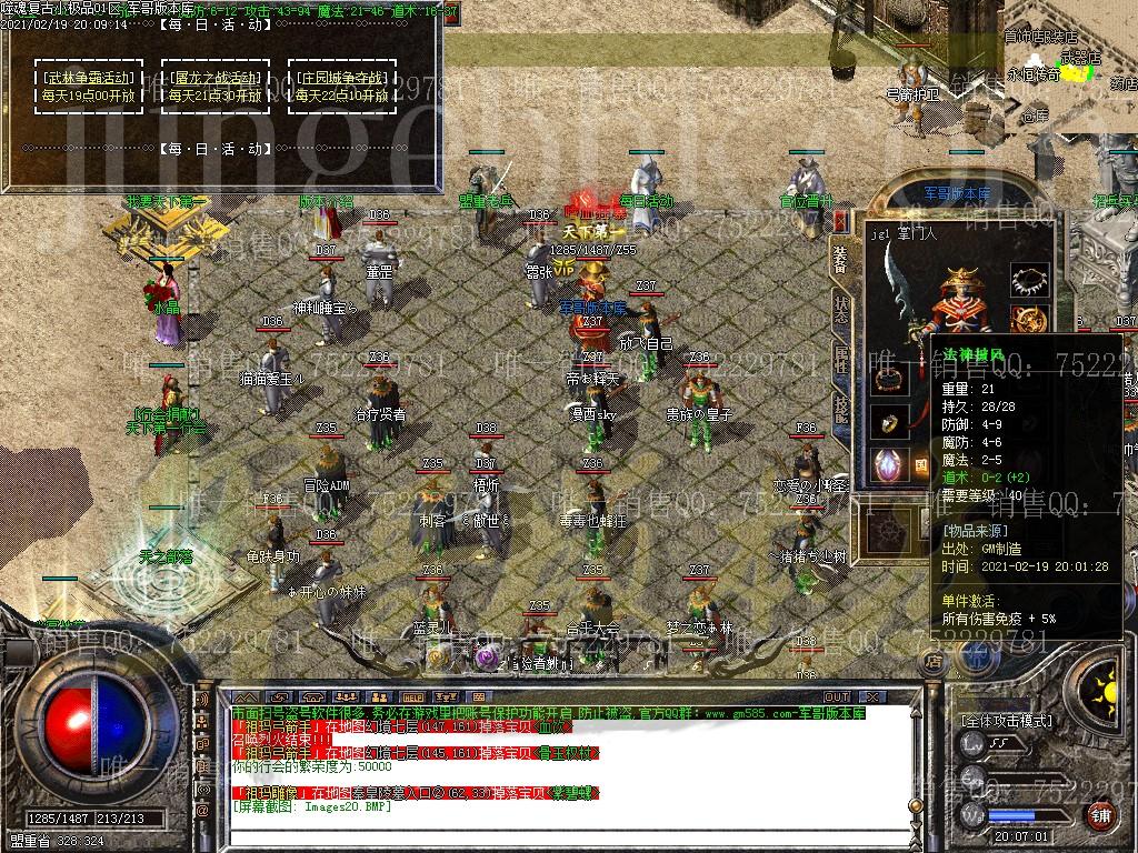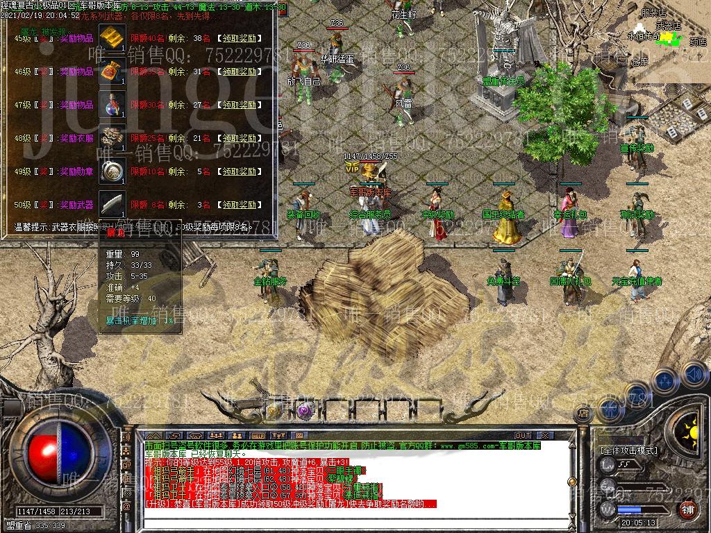 极器装备与幸运 1.本服幸运9即可触发最高威力,运10可达到峰值! 2.幸运链可在各大小随机BOSS爆出,也可在综合NPC升,运9不难! 3.极品最高+5,各大小BOSS随机爆出! 4.武器最高升7点,可在综合NPC进行升级! 5.普通装备不是终点也不是毕业!+5套才是你的最终的梦想! 6.52级可以免费领取终极装备天之神甲/神袍,BOSS有几率爆出极品天之装备 ============================================================