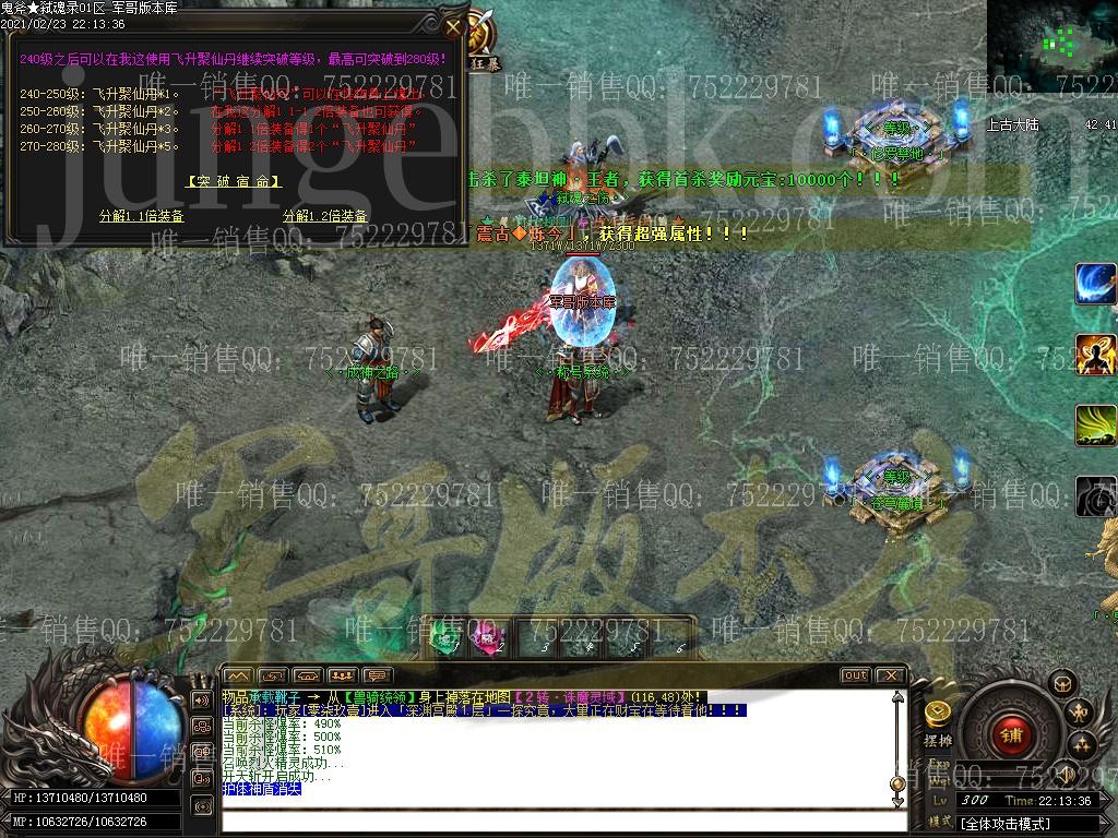 金币充值比例 1 :10   版本为正常开区端有问题联系QQ 616102345  处理