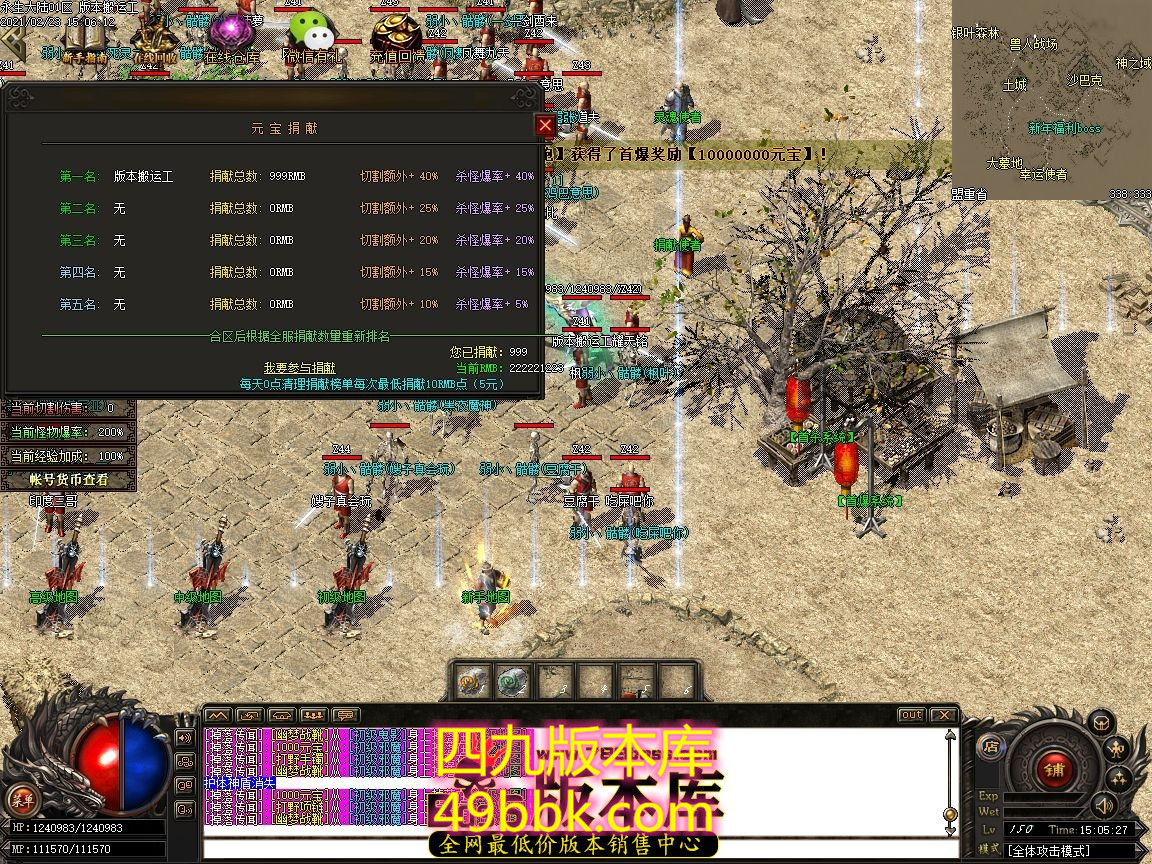 元宝----游戏主流货币,本服为90%元宝服,用途贯穿前中后期。(怪物大量爆出,到了后期元宝更是10W 20W的爆出!)