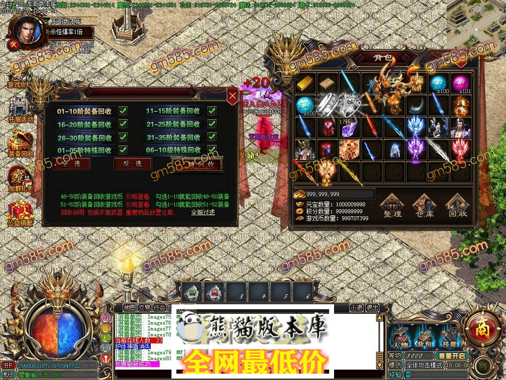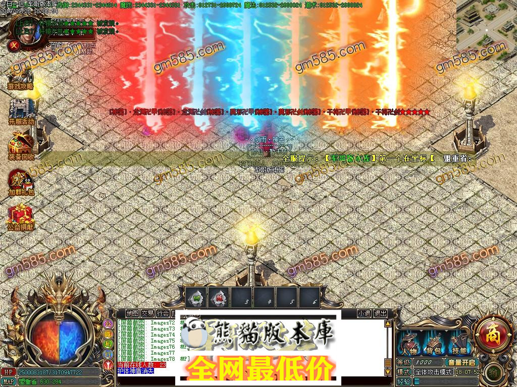 【新闻公告】 【元宝充值】:元宝 1:50万 游戏币400 【测试区多送20%】