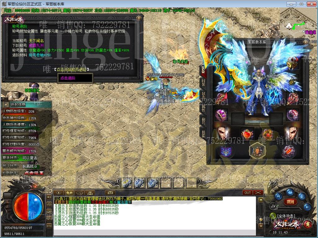 3. 有能力可以将前期称号进阶,全部升满需要4500万元宝[前期追求爆率直接升,称号卷所有怪都有爆出]