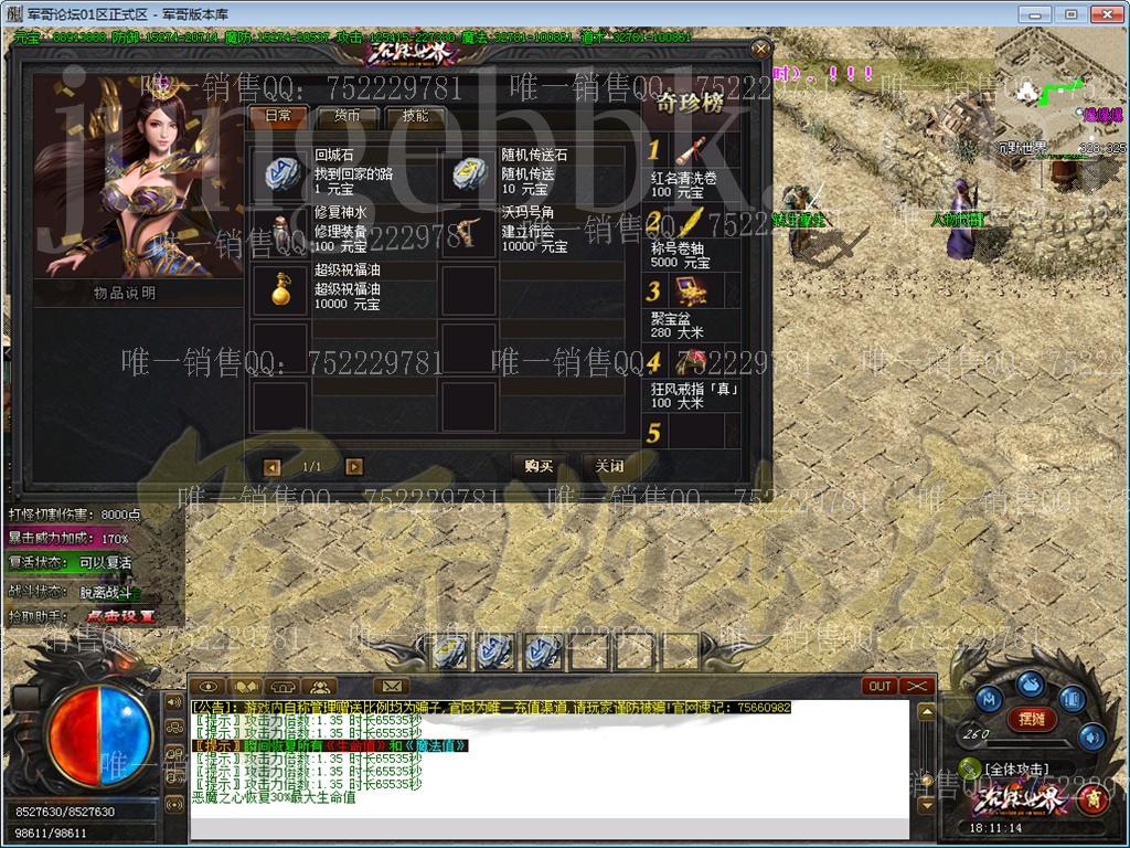 金币充值比例 1 :10   版本为正常开区端有问题联系QQ 616102345  处理