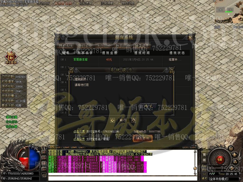 金币充值比例 1 :10 版本为正常开区端有问题联系QQ 616102345 处理