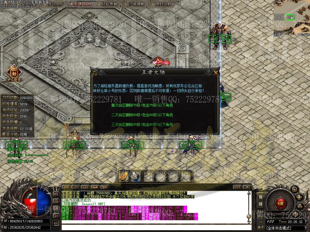 3,起号攻略: 直接冲300左右.把主城称号.切割全部弄满.基本横扫前中期所有地图了.后期想牛逼建议还是要收元宝. 商场直接幸运+7卷.凑满幸运15刀刀最大伤害 其余玩法与上面一致 重要:有条件记得要升级切割,后期翻倍增加打怪伤害,一定要点打快蹭蹭的