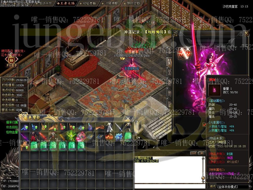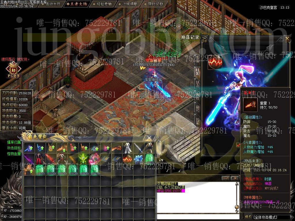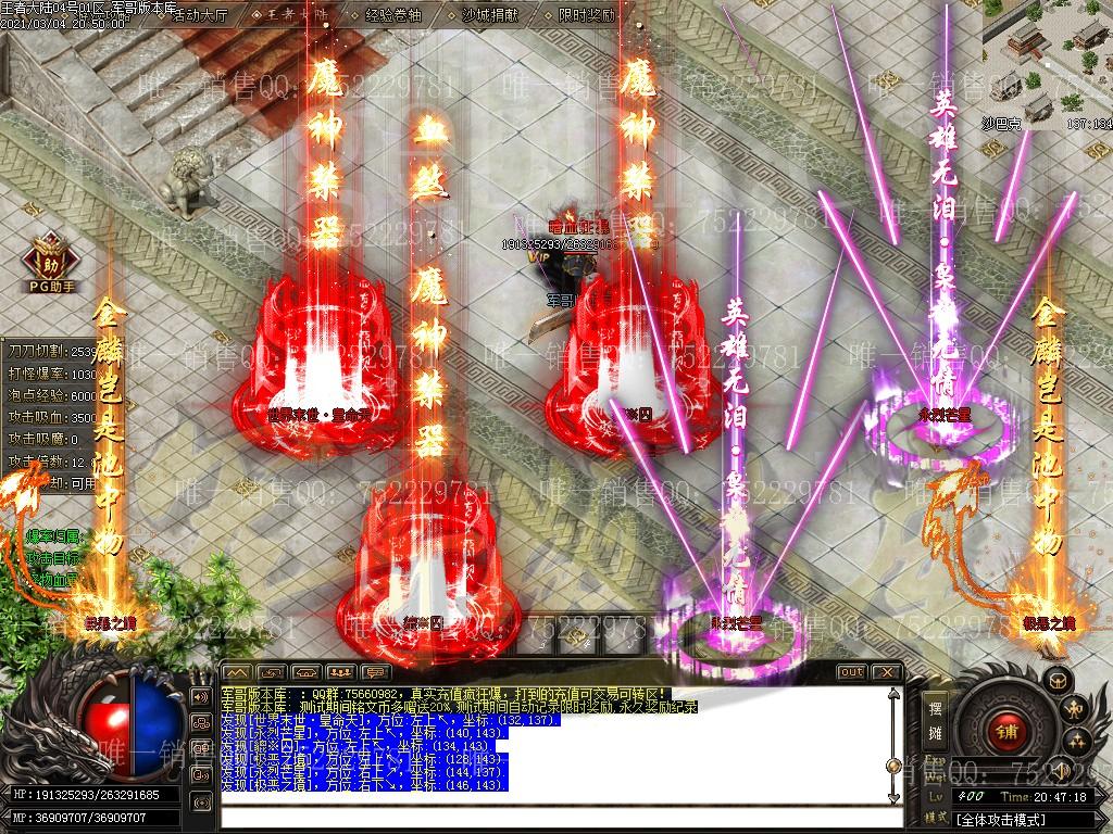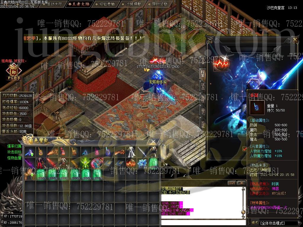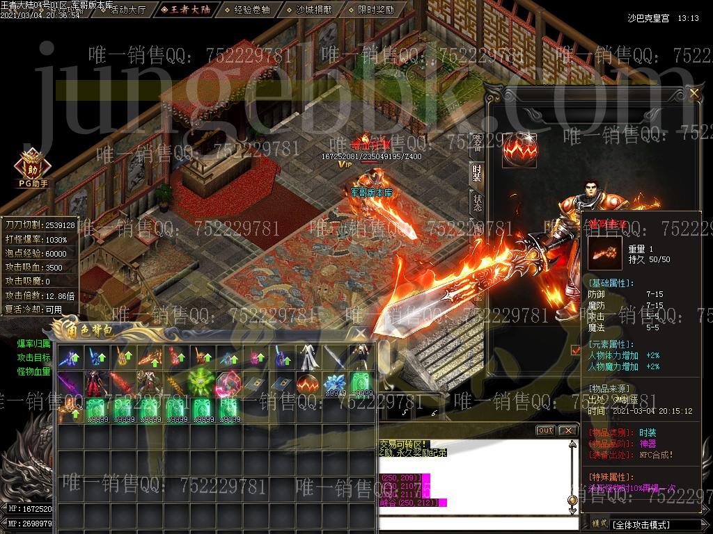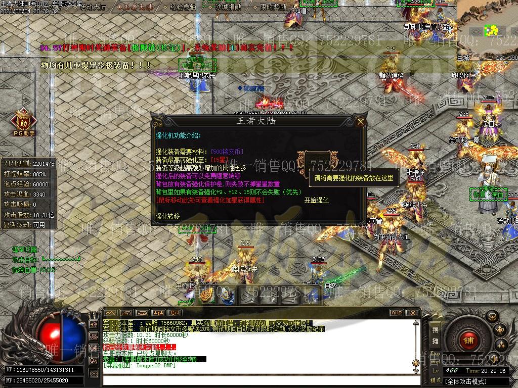 注:游戏上线即为无限刀! 注:本服郑重承诺小怪均有几率出终极,绝对不假,试过爆率的都知道 注:游戏内打到奥秘书业一定要去土城NPC换取,可获取大量资源,一般人我不告诉他 注:本服装备打到比较好的一定要拿去鉴定处鉴定,几率出本服特色BUFF,让您战斗力注:为促成一个良好的游戏循环,本服开设了交易商行,内会出售一些必要材料,土豪想起号速度起飞的可以先在里面,玩家可直接卖入进去回收点可。详请请各位游戏内查看