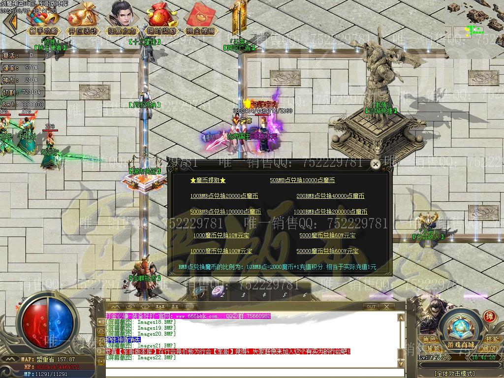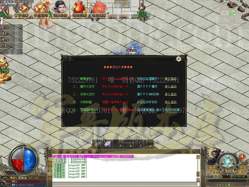 金币充值比例 1 :10   版本为正常开区端有问题联系QQ 616102345  处理