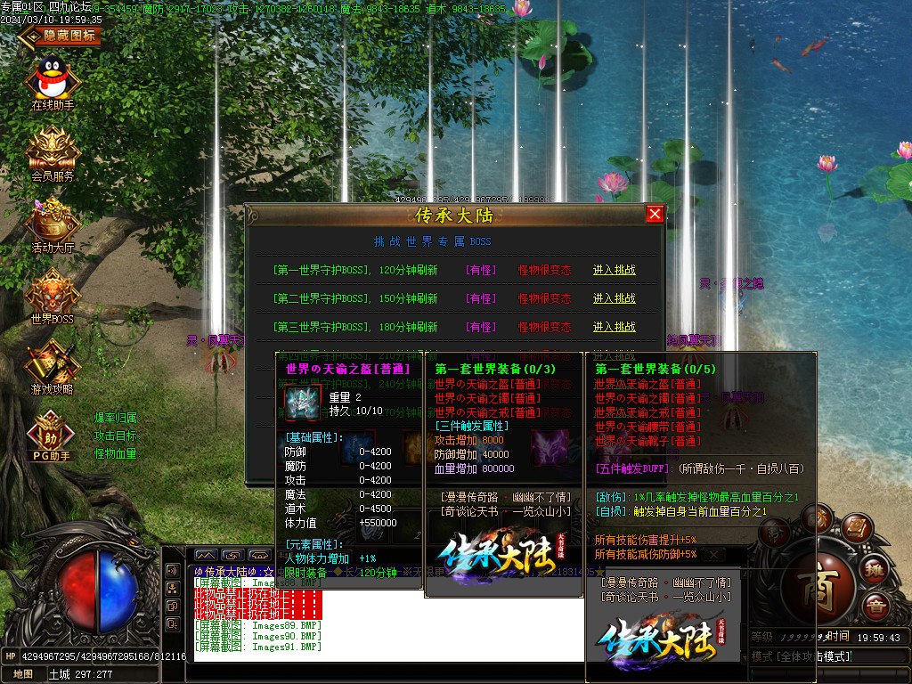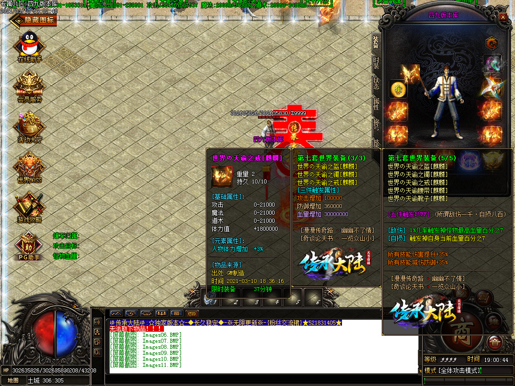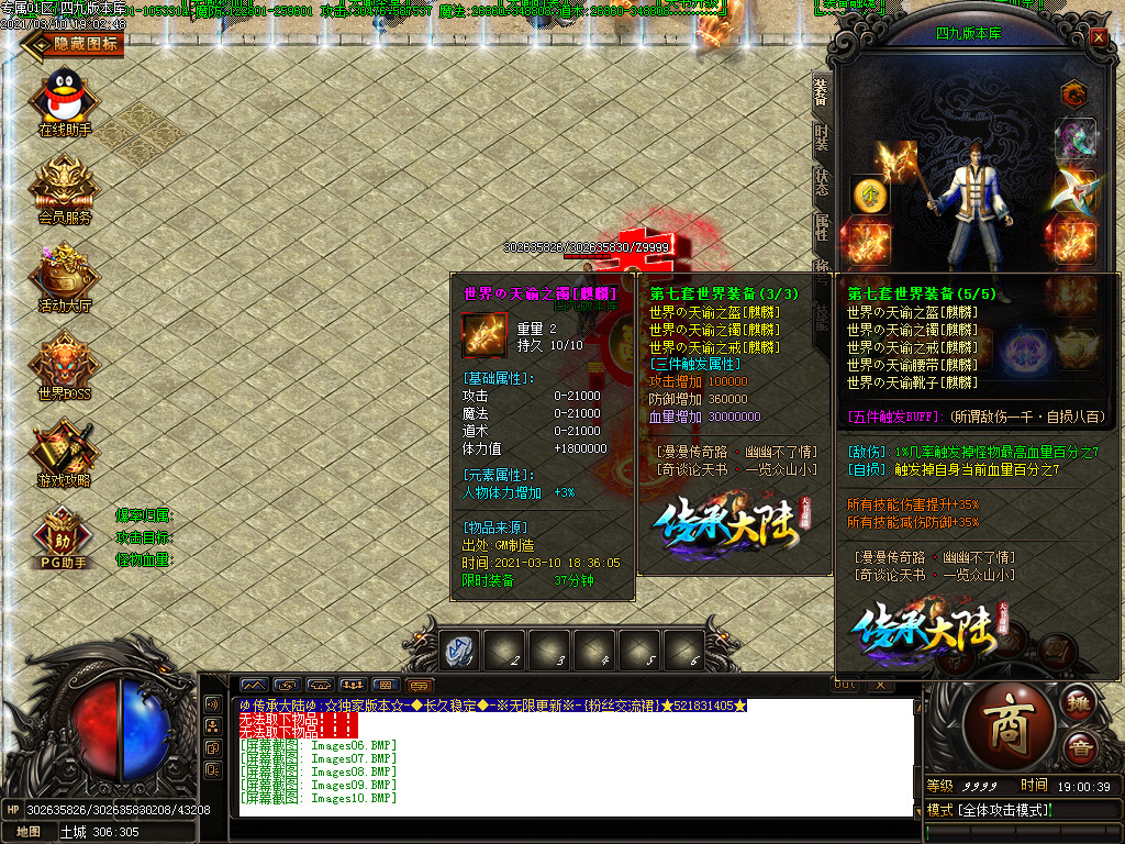 2. 本服装备包括[专属·限时·转生·等级·五行·战力·时装·天书] 丰富内容需游戏体验