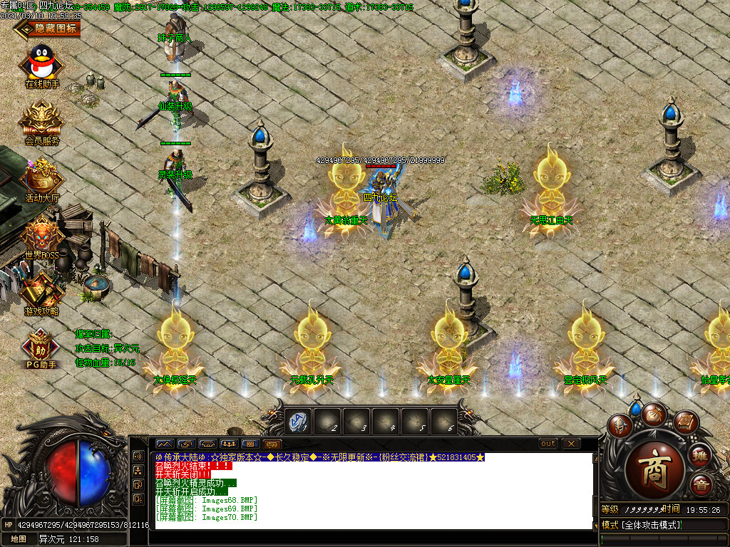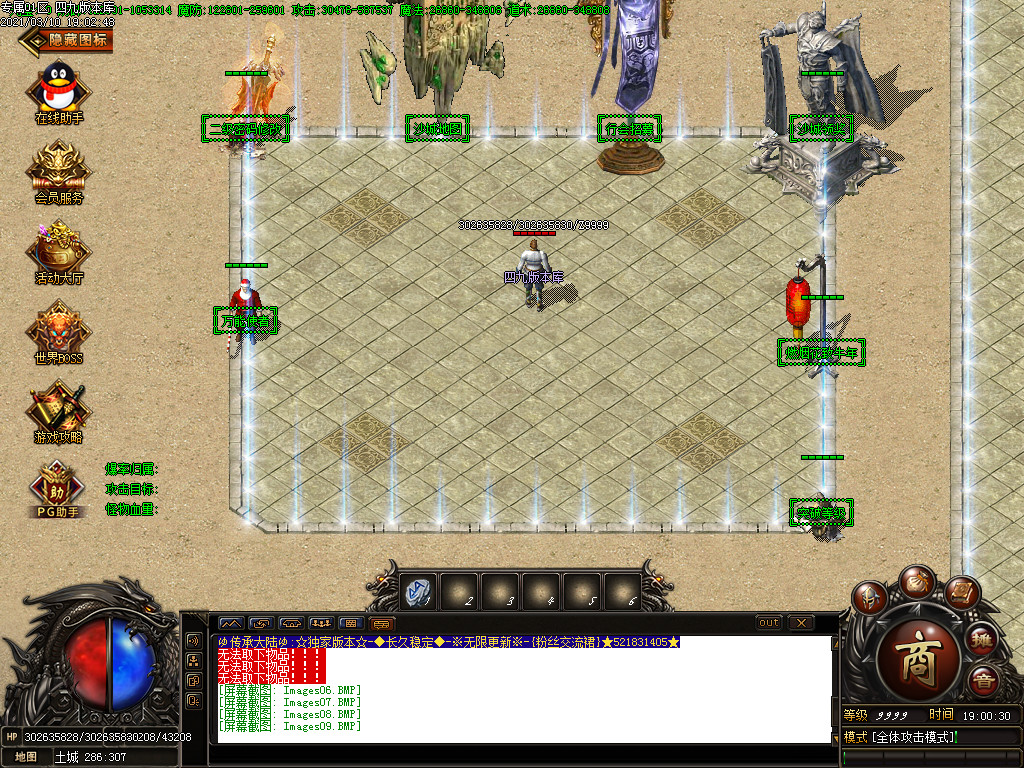 六大暗之神殿: 在野外地图NPC传入,刷新六大暗之BOSS,暗之BOSS击杀30只神兵道刷新一只超级暗之BOSS(全服提醒)