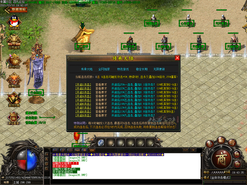 连击系统: 修炼连击9重 永久增加爆率倍攻加成,击杀对方触发就连击可触发攻击加成,打架打怪最佳首选
