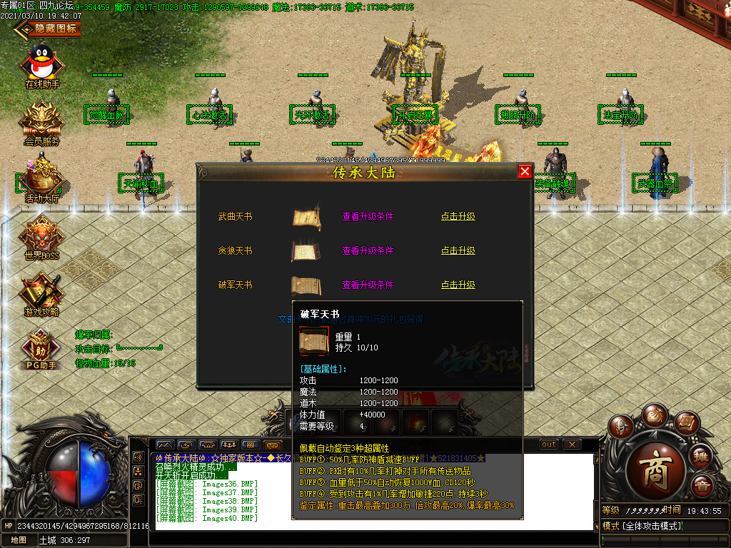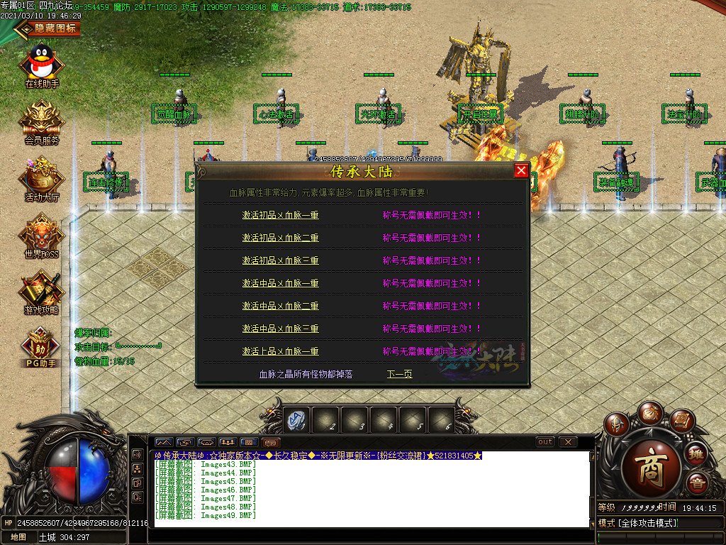 血脉系统·秒血系统·圣章系统·心法·光环·神器归属·九星时装·九星天书等等就不一一介绍,请游戏自行探索