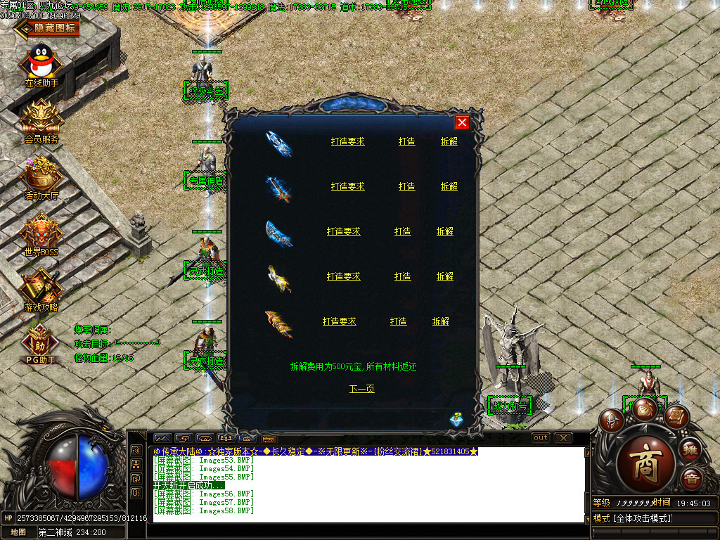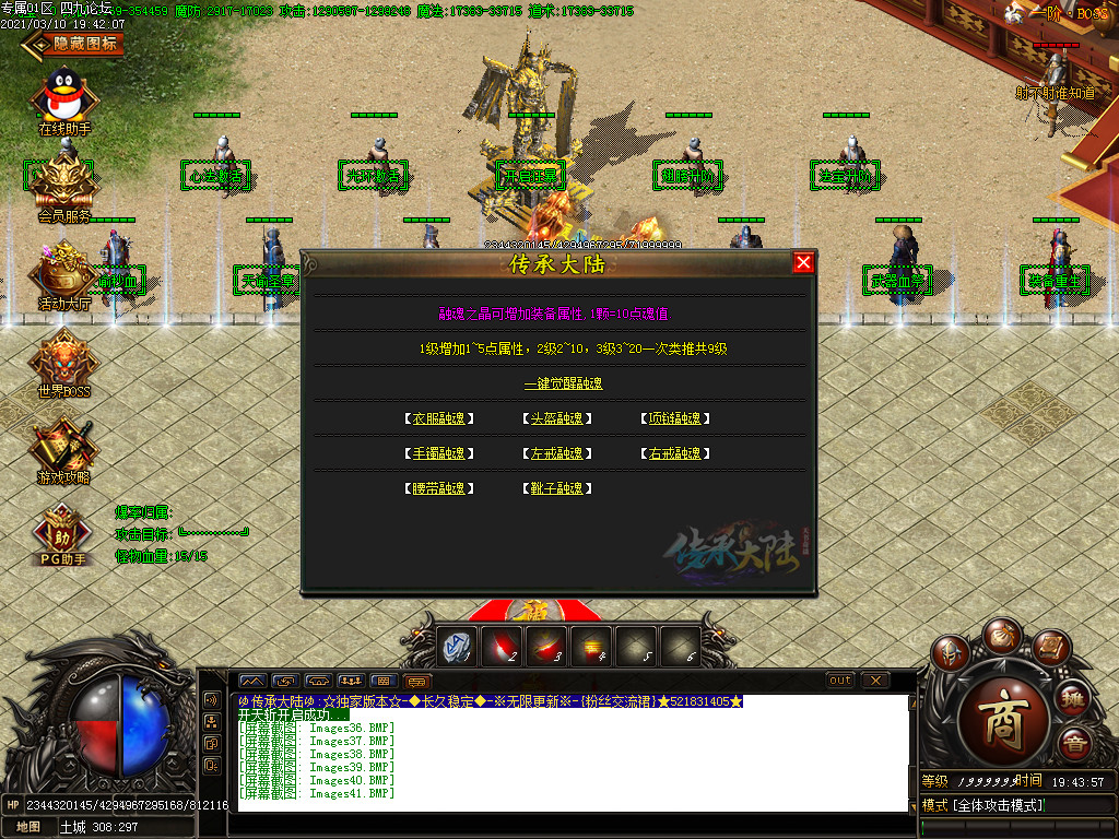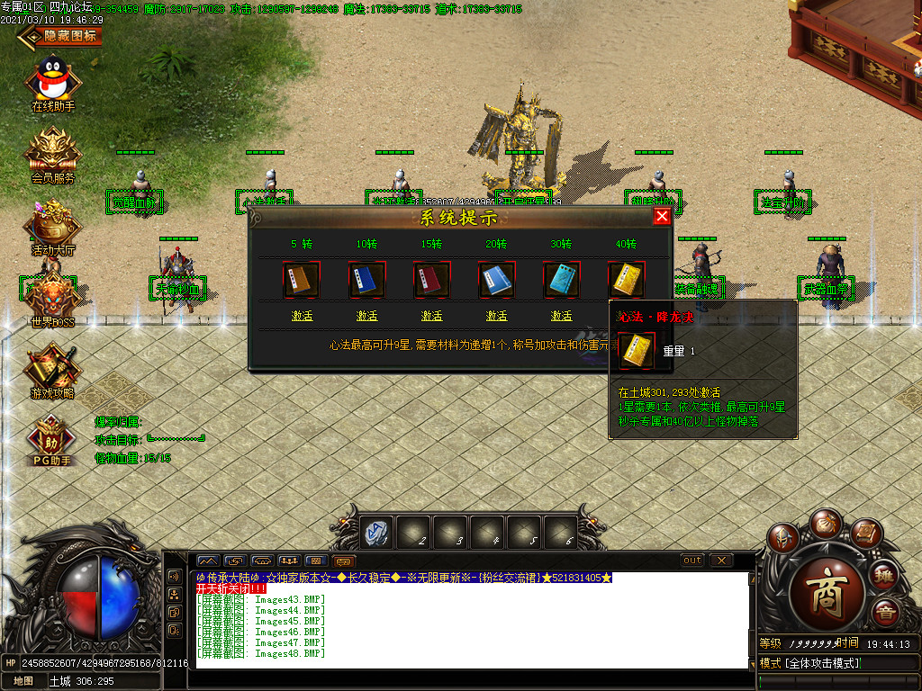 圣石系统: 結阵达到一定层数 会触发各个全服活动 (天谕圣石所有怪物高几率爆出·双击可获得超多奖励)
