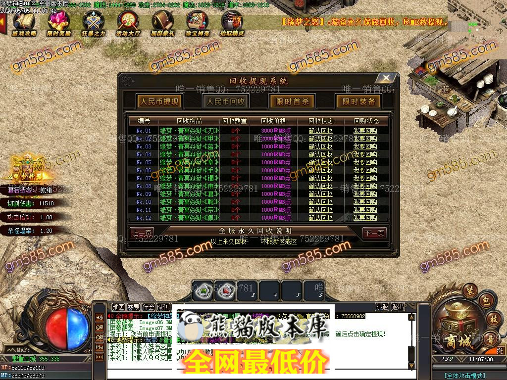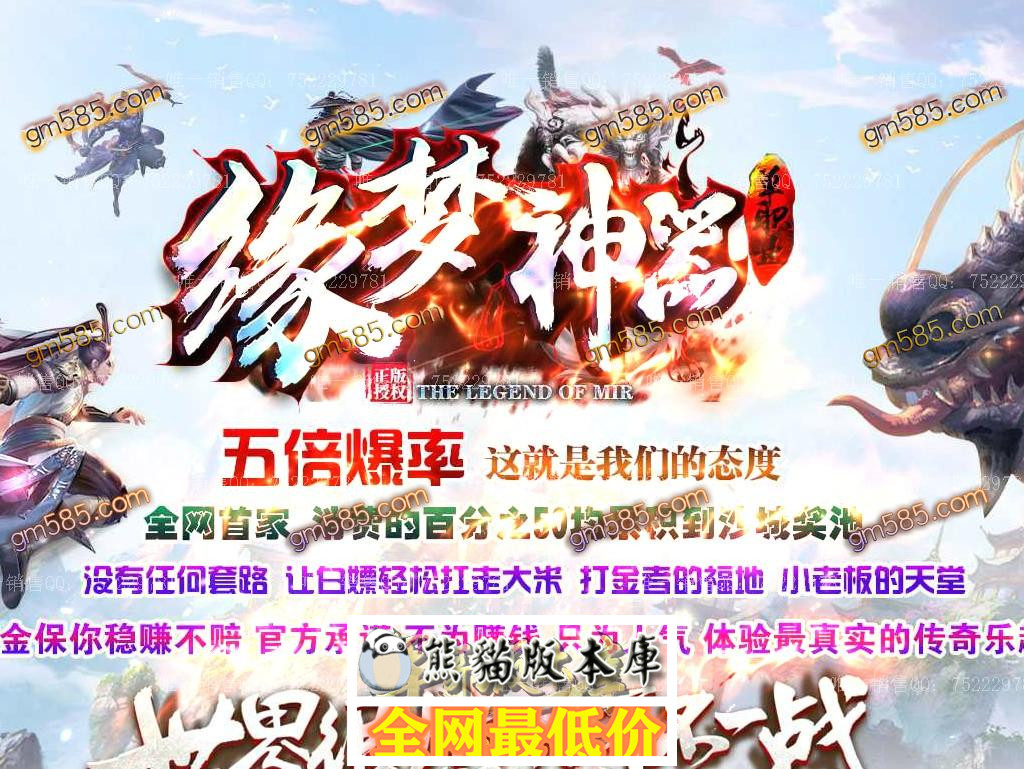 缘梦神器独家单职业 东西好卖 爆率全开 不卖元宝一切靠打 起步完全无门槛 单区首爆奖励一万元 近百件装备回收