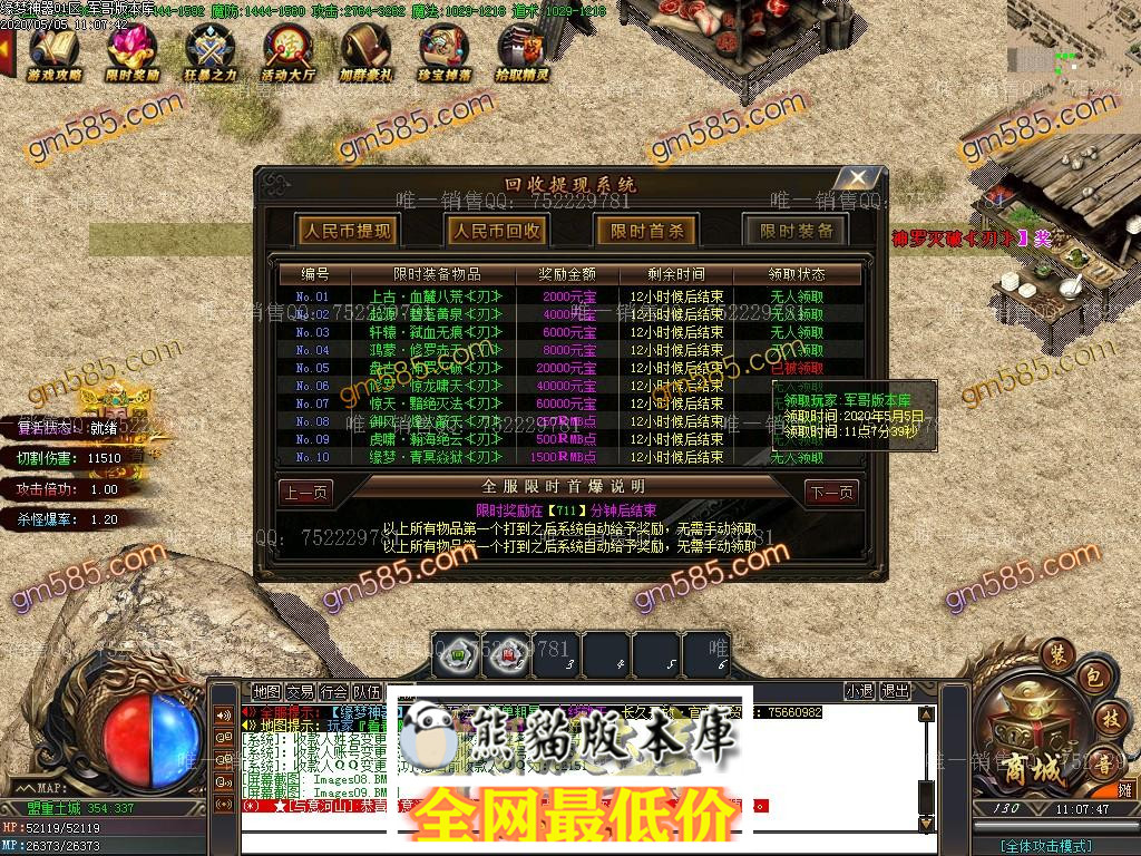 2020独家版本 正版授权 装备 永久回收 永久1:10(收取10%手续费)