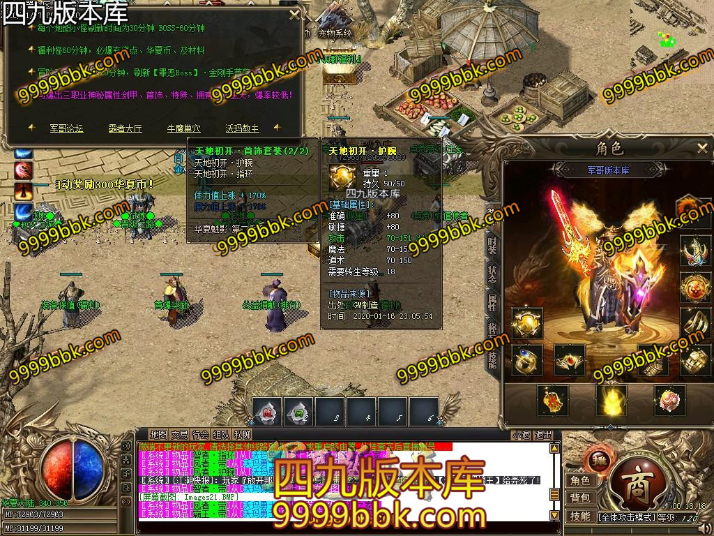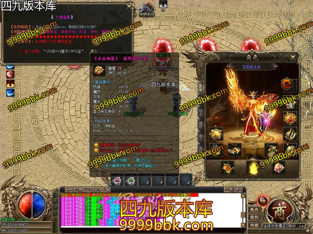 <首爆物品大量奖励,所有BOSS几率爆出。散人可无限打货币卖