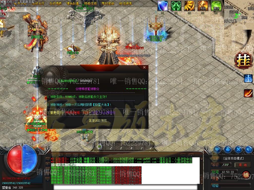 回馈玩家:上线领取赞助,直接强化技能,领取封号,下地图找BOSS打.