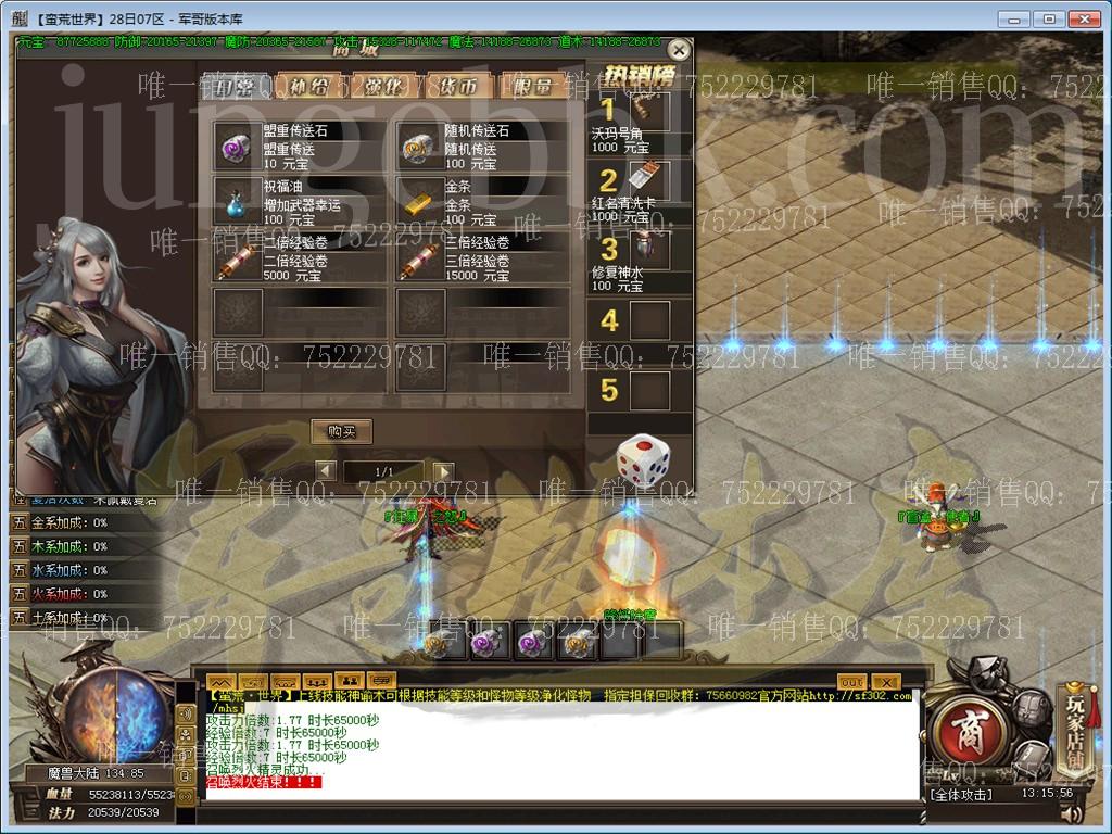 5.商 城:你所能看到的,除了一些基础的东西,全靠爆(这样设置理由直接还原到最原始传奇的本色)
