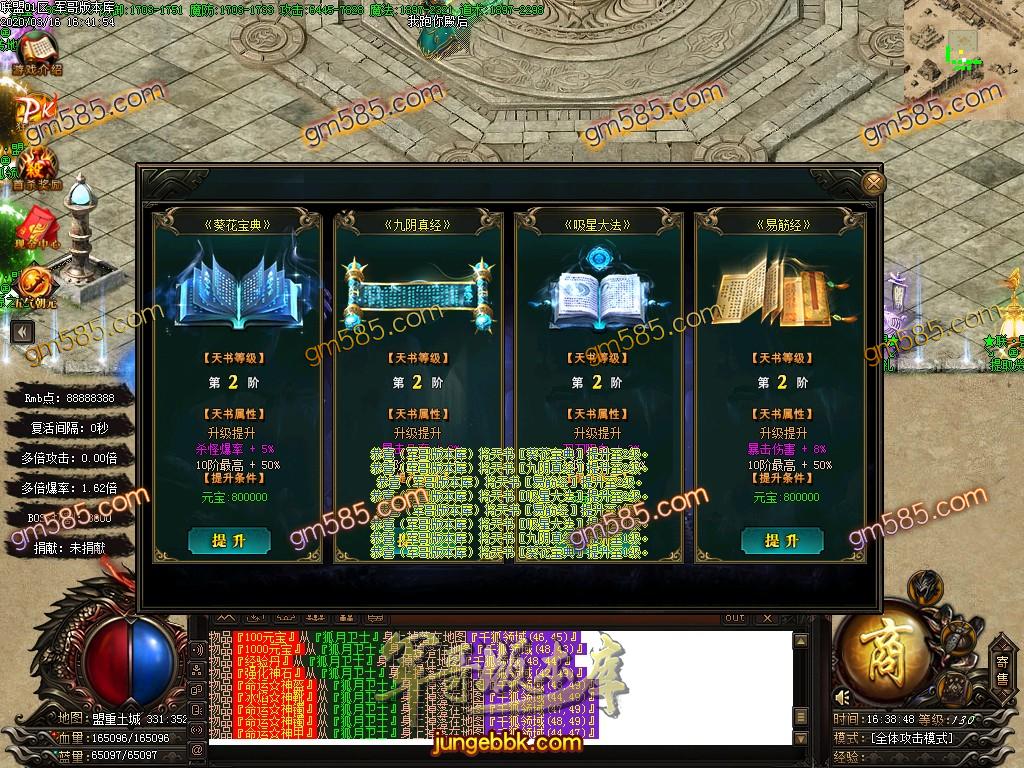 1:不管是玩家还是老板土豪 建议有多余元宝一定要先升级天书的爆率加成(哪怕只提升几次.爆率加成的感觉明显不一样(升满更爽).)