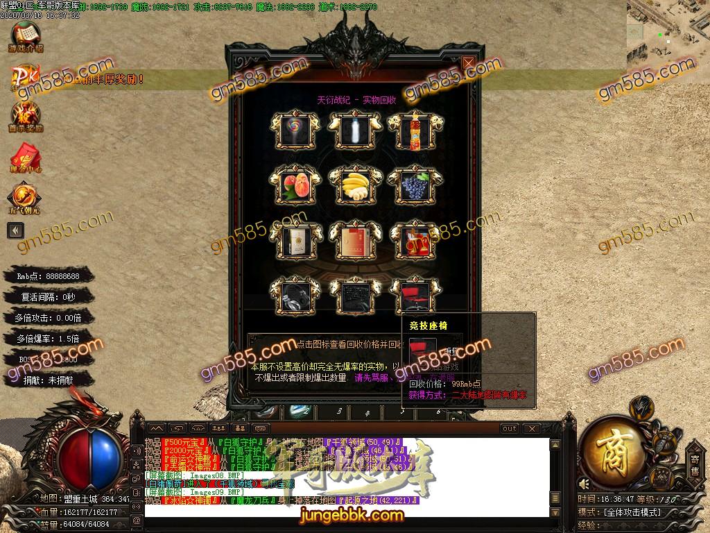 3: 天材宝箱在转生地图所有BOSS的爆率为1/3 称号地图和一品官爵地图爆率超高