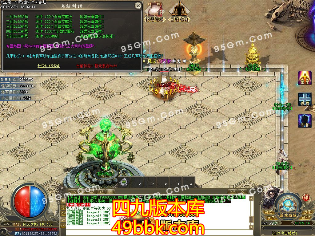 九五至尊消耗5米  五红BUFF带全屏吸怪,几率斩杀怪物最后一下50米(自愿消费) 本服全满197其他消费看个人自愿