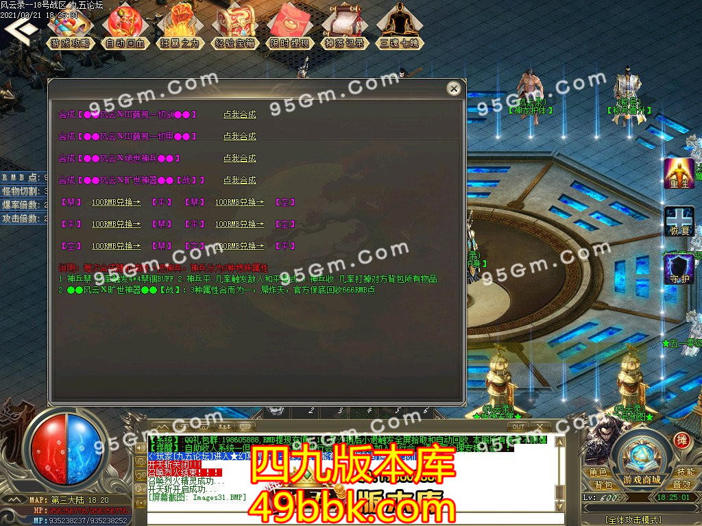 [GOM引擎] 90-137风云录单职业传奇版本-ESP插件-带光柱-狂暴之力-三魂七魄-产金排行-系统