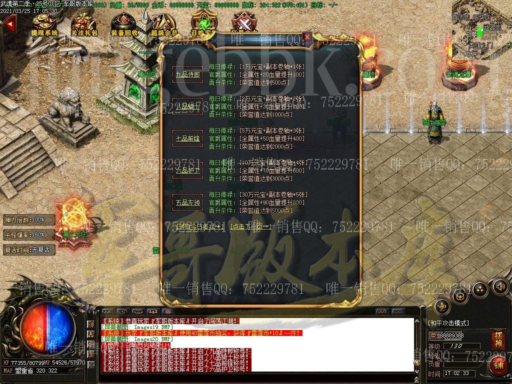 金币充值比例 1 :10   版本为正常开区端有问题联系QQ 616102345  处理