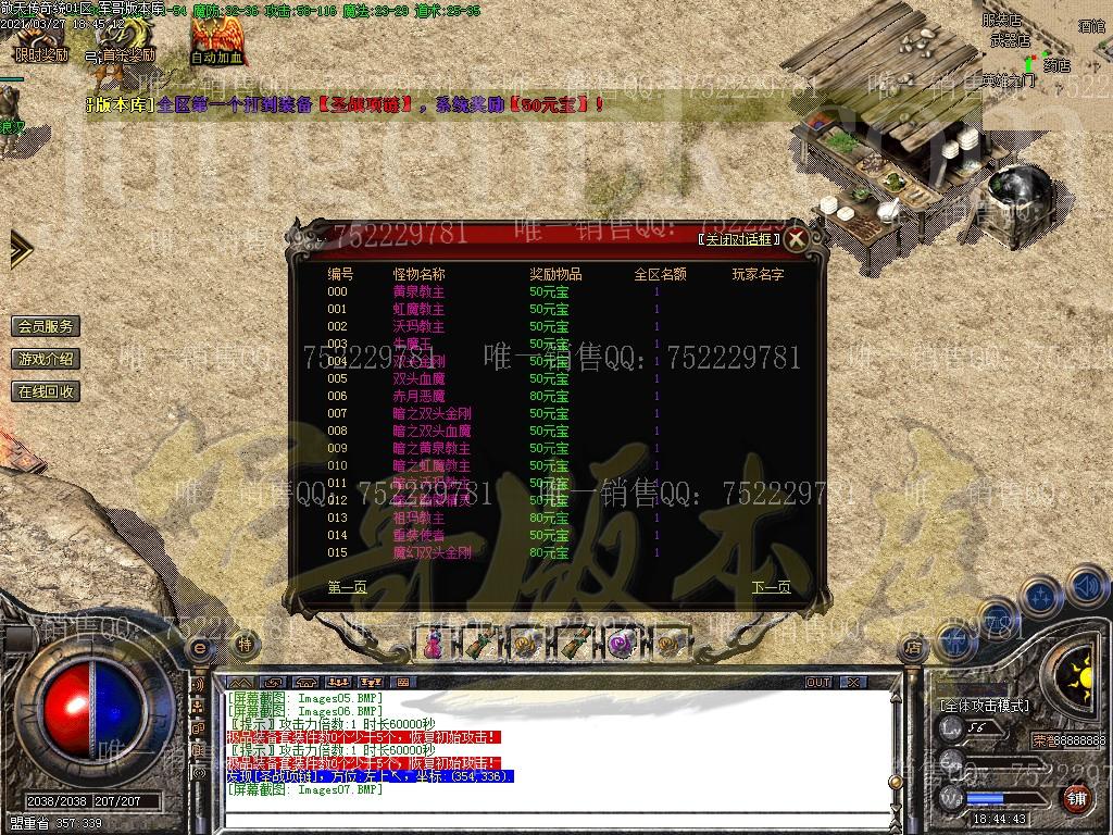 公告:六大衣服怪和大BOSS怪可爆七龙珠,集齐七龙珠可到盟重老兵触发幸运树,幸运树携带大量元宝和宝石装备出现在盟重书店。