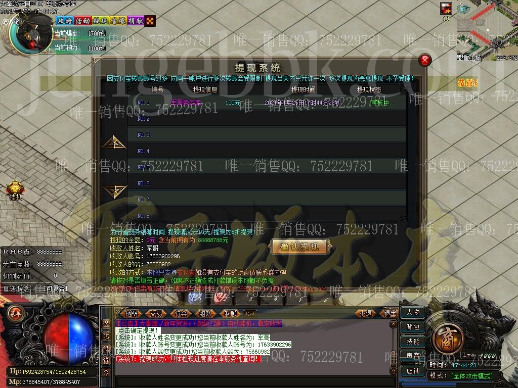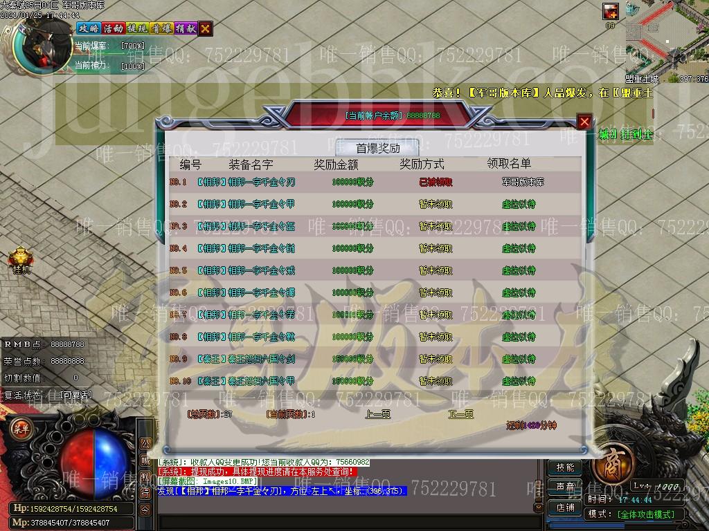 金币充值比例 1 :10   版本为正常开区端有问题联系QQ 616102345  处理