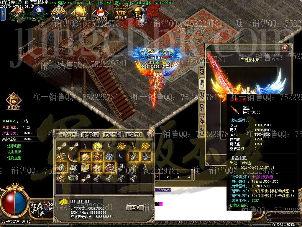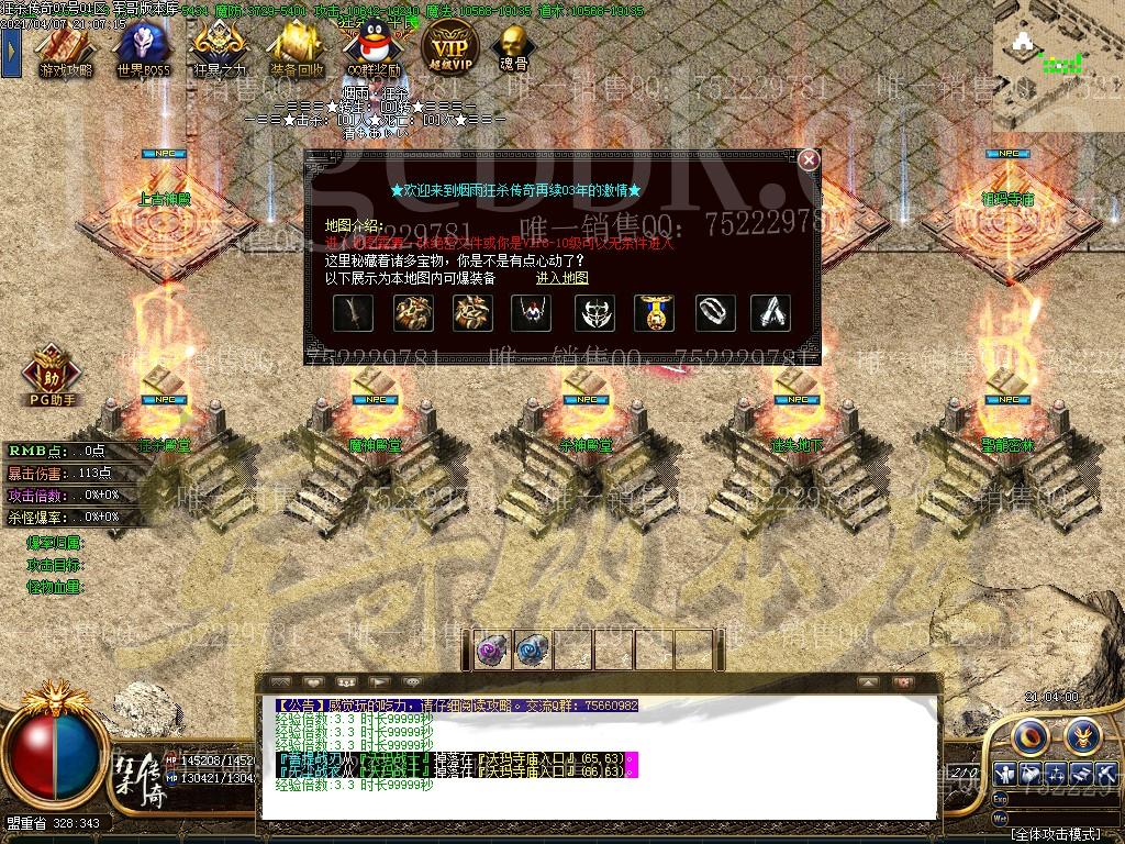 【本服特色】:⑵所有地图均有BOSS刷新。让装备获得更加容易。