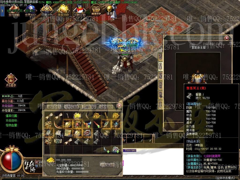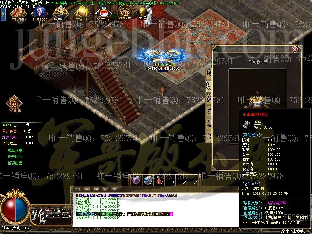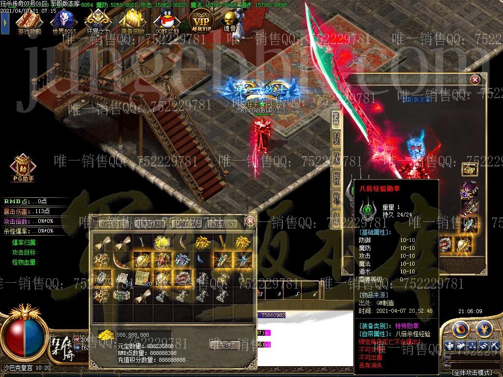 【本服特色】:⑴新增特色地图,地图多,BOSS多,散人也可获取终极装备。