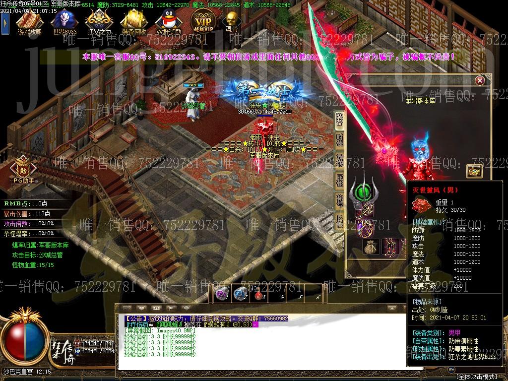 【装备介绍】:冲天-菩提-无尘-芙蓉-巫月-聖灵-聖龍-迷失-杀神-魔神-狂杀-灭世。终极可直接爆出。