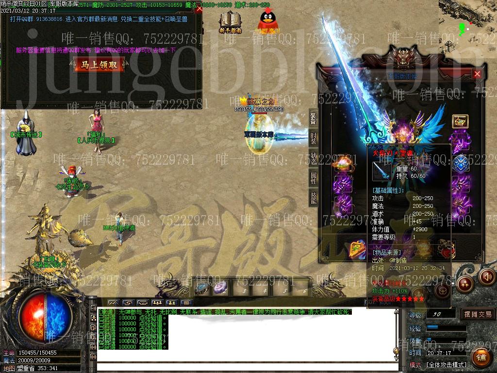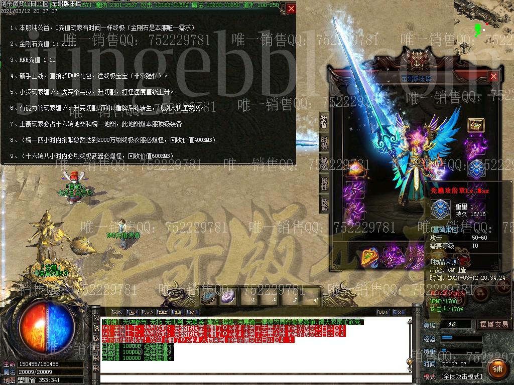 金币充值比例 1 :10   版本为正常开区端有问题联系QQ 616102345  处理