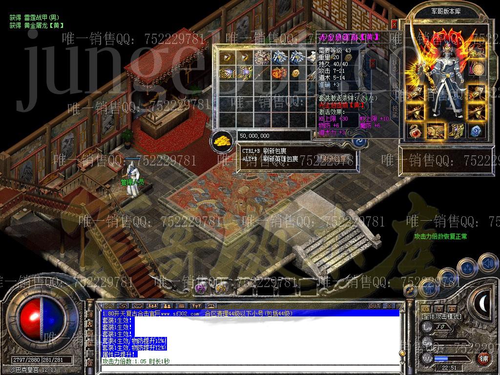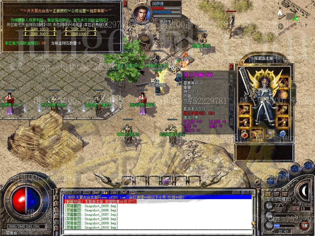 温馨提示:任何玩家不得私下交易元宝买卖,发现直接封号处理,不能让盗号的份子有机可成! 管理人员绝不参与游戏。竭诚为所有玩家提供一个公平、公正的游戏环境,希望大家玩的开心!玩的愉快! 本服元宝网站冲值统一比例1:100为通过精心配置!一秒到帐,百分之百不掉单! 谨慎防骗:游戏中玩家说有比例或有管理人员的QQ等,一律是骗子。 时间设置:攻城开始时间20点、攻城时长120分钟、行会战时长180分钟;清理死尸时间60秒、清理物品时间120秒;喝药间隔500毫秒以上(过快导致卡药)! 温馨提示:任何玩家不得私下交易元宝买卖,发现直接封号处理,不能让盗号的份子有机可成! 温馨提示:为了防止脱机新区开放第二天中午12:00下脱机地图收取金刚石一颗! ============================================================