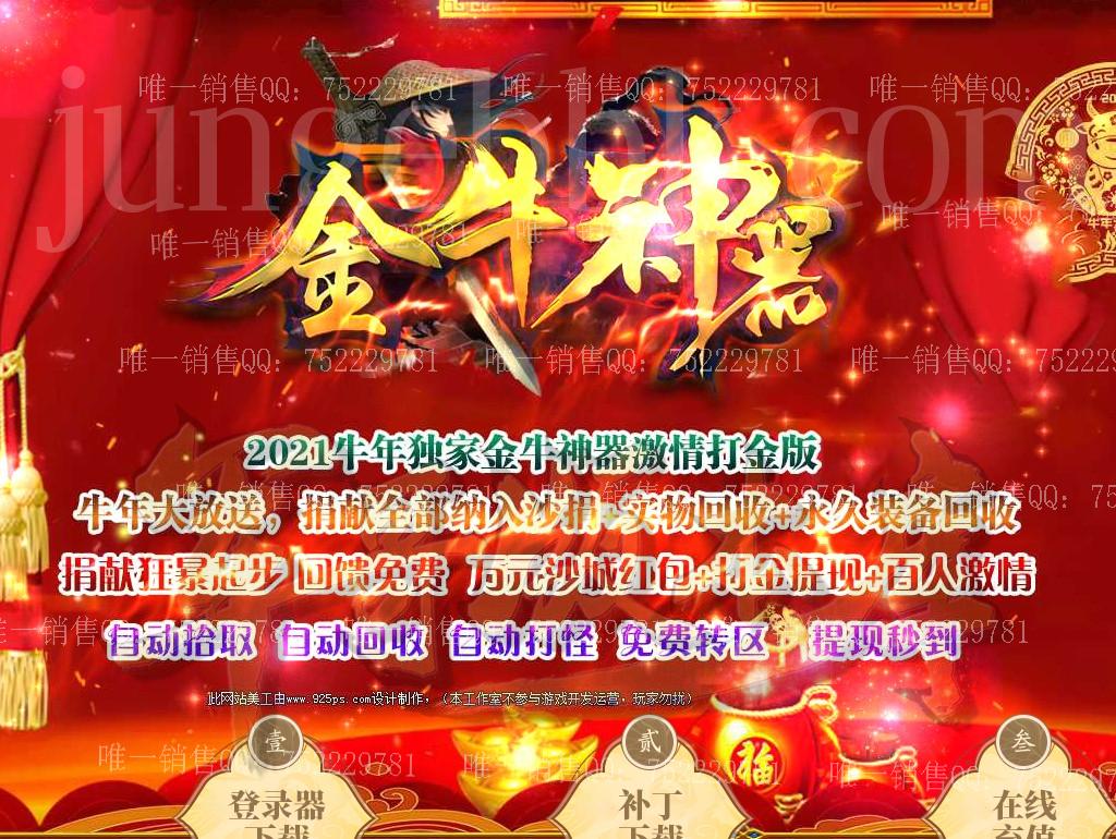 [金牛神器] ( 金牛神器]全网最火单职业!不秒杀终极不爆退你充值! 24小时10元秒-无惧跑路,金丰正规授权,有保障