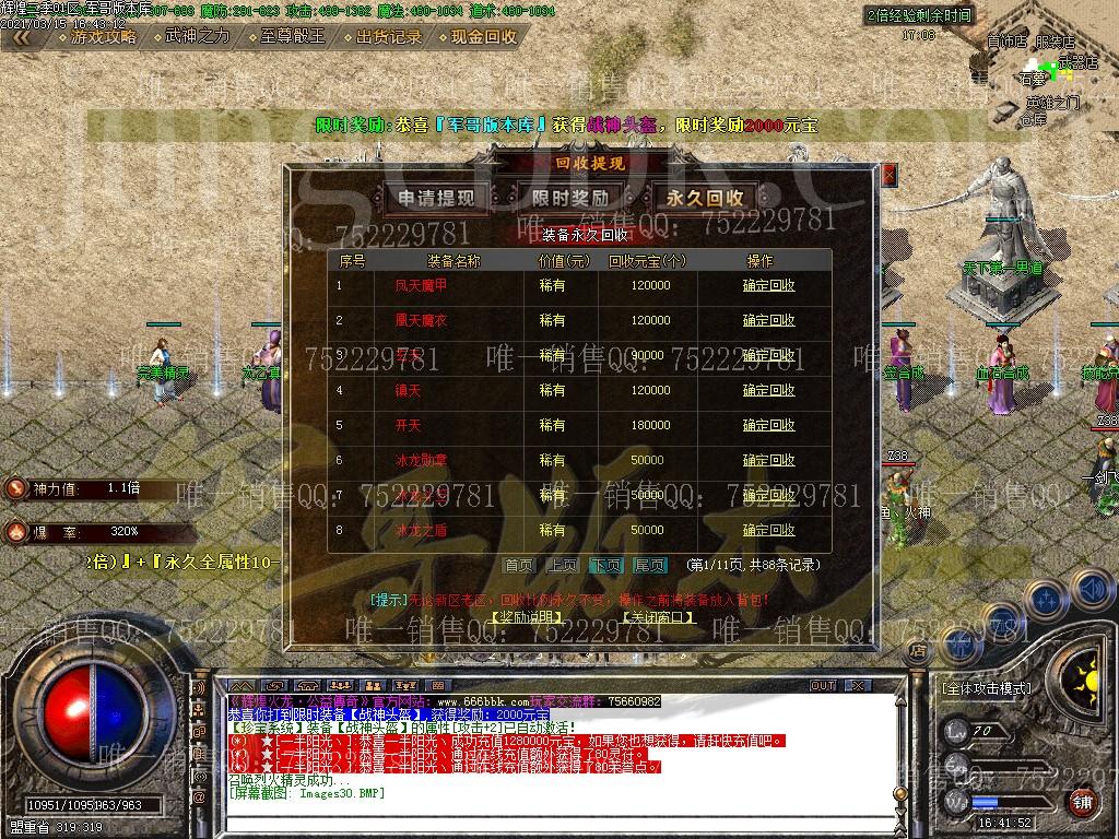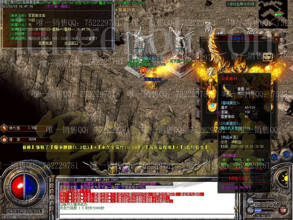 75级地图超级BOSS世界BOSS(总共50只左右)半个小时刷新一波  完美黄金牛魔王4只 一个小时刷新一次(地图非常小,爆率非常高)